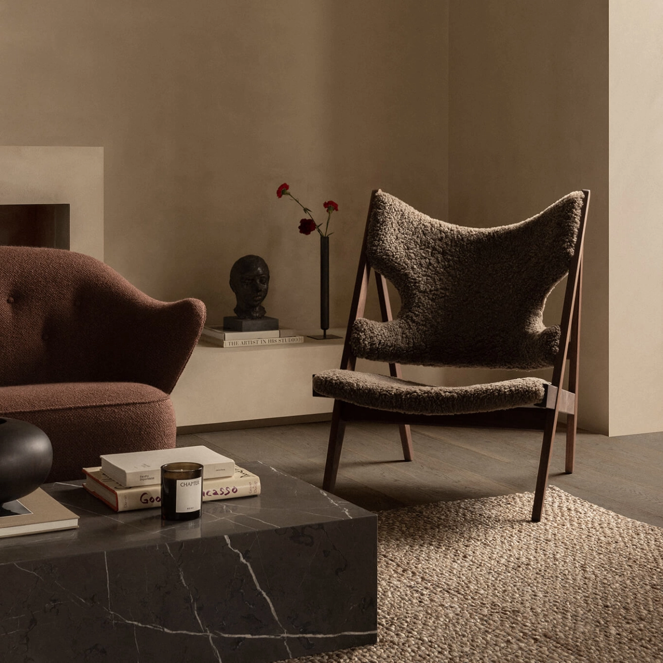 Le fauteuil KNITTING Noyer Sheepskin Sahara incarne une interprétation chaleureuse et sophistiquée du design selon Audo Copenhagen. Inspiré par la rencontre entre modernisme scandinave et savoir-faire artisanal, il déploie une silhouette fluide et élégante, sublimée par la profondeur du noyer et la douceur lumineuse de la sheepskin Sahara. L’ensemble compose une pièce sculpturale au caractère affirmé, pensée pour inscrire le confort dans une esthétique intemporelle. Sa structure en noyer, aux proportions équilibrées et au veinage expressif, dialogue avec la texture dense et enveloppante de la peau lainée Sahara pour créer une expérience d’assise généreuse et durable. Le fauteuil KNITTING trouve naturellement sa place dans un salon résidentiel raffiné, un espace lecture, un lounge ou une suite hôtelière premium, où il structure subtilement l’aménagement tout en invitant à la détente. L’alliance du bois sombre et de la sheepskin Sahara crée un contraste élégant et organique, idéal pour des projets d’architecture intérieure recherchant profondeur, chaleur et confort enveloppant. La précision d’assemblage et la justesse des proportions traduisent l’exigence de conception propre à Audo Copenhagen. La structure architecturée soutient un volume d’assise accueillant qui favorise un maintien confortable et une sensation immédiate de bien-être. Pensé pour traverser le temps sans perdre de sa modernité, le KNITTING s’impose comme une pièce signature capable de valoriser durablement un intérieur résidentiel ou hôtelier haut de gamme. Le fauteuil KNITTING se distingue par l’alliance profonde du noyer et de la sheepskin Sahara par son confort enveloppant et tactile par son écriture sculpturale subtilement réinterprétée et par sa capacité à structurer avec élégance un espace contemporain exigeant.