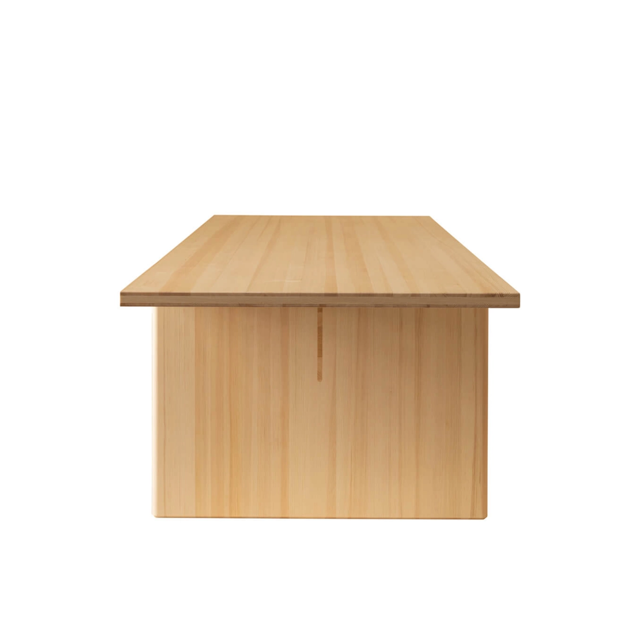 La table Kolmio de Vaarnii incarne l’alliance parfaite entre simplicité et robustesse, pensée pour résister à l’usage quotidien tout en apportant une touche de caractère à l’espace. Son design épuré dissimule une construction ingénieuse : une base de pin finlandais composée de sections de bois récupérées, enveloppées par des planches parfaites. Ce mélange de matériaux offre à la table Kolmio une structure solide, avec une ligne nette et une présence marquée, adoucie par des bords légèrement chanfreinés. Disponible en deux tailles, la table Kolmio de Vaarnii s’adapte à différents espaces et styles de vie. Fabriquée en Finlande à partir de pin local, elle offre un équilibre subtil entre fonctionnalité et esthétique brute.