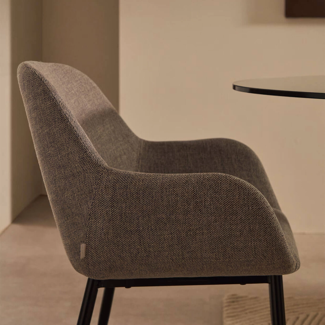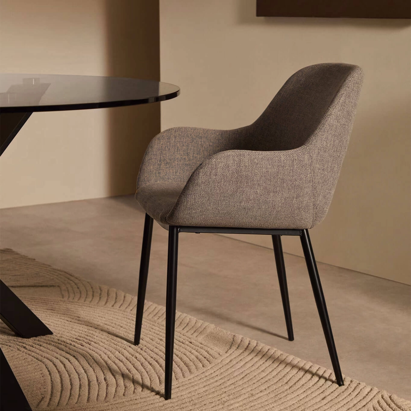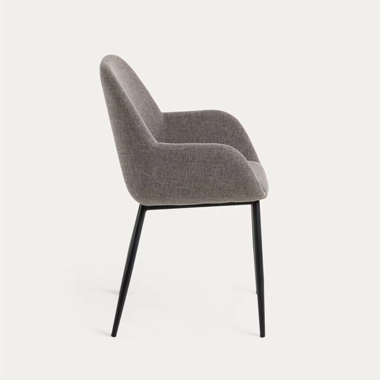 Konna est une chaise en tissu gris clair, issue de la collection Konna de Kave Home. Elle associe un siège ergonomique aux lignes arrondies à une structure en acier résistante pour un confort et une stabilité optimaux. Ses pieds sont équipés de protections pour préserver vos sols. Avec son revêtement déperlant, son design contemporain et ses courbes élégantes, Konna allie style et confort au quotidien. Disponible en plusieurs coloris et finitions, elle s’adapte facilement à tous vos espaces et apporte une touche chaleureuse et moderne à votre salle à manger ou à votre coin repas.