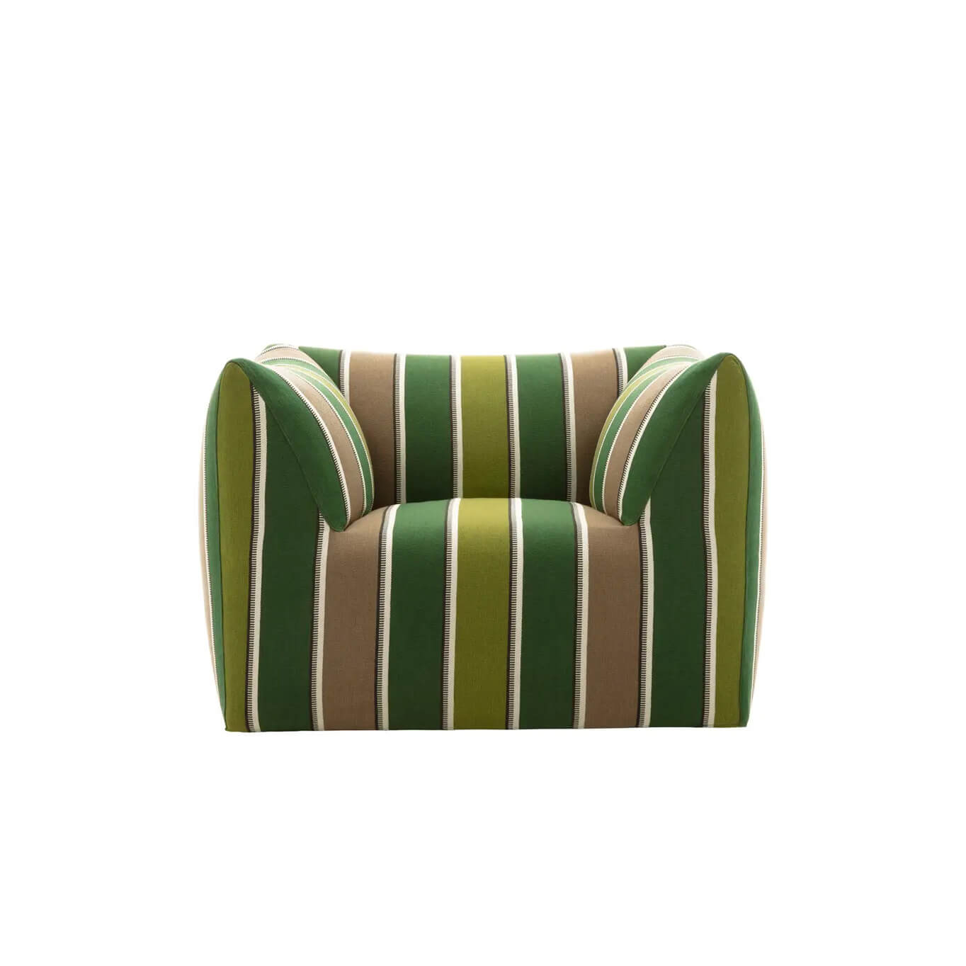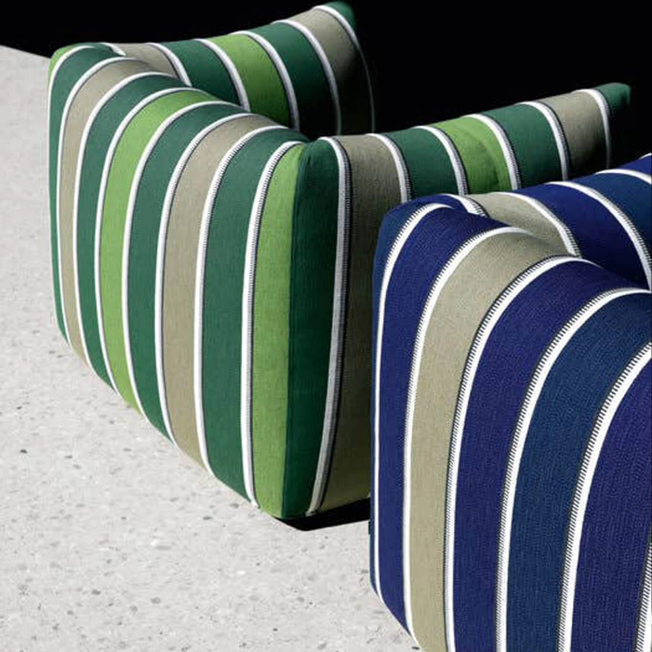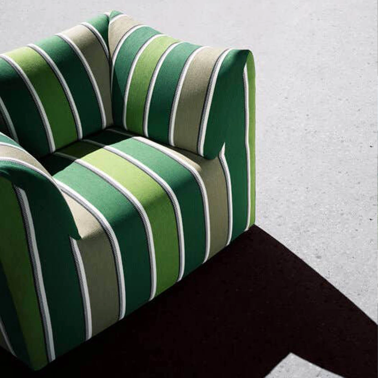 Le Bambole, qui a remporté le prestigieux Compasso d'Oro en 1979. Dans sa version extérieure, le fauteuil conserve les courbes douces et les formes accueillantes qui ont fait de ce design un véritable classique. Aujourd'hui, le