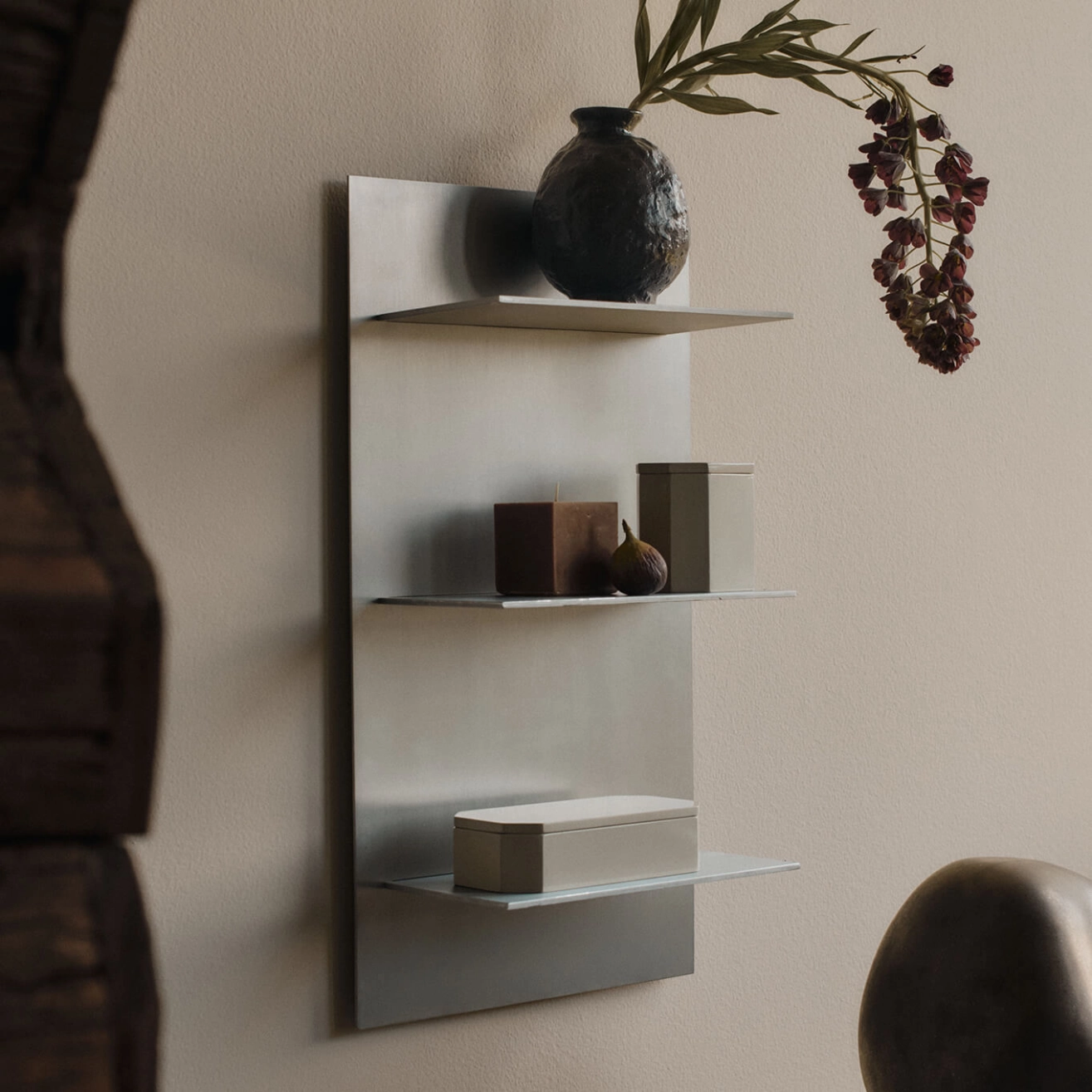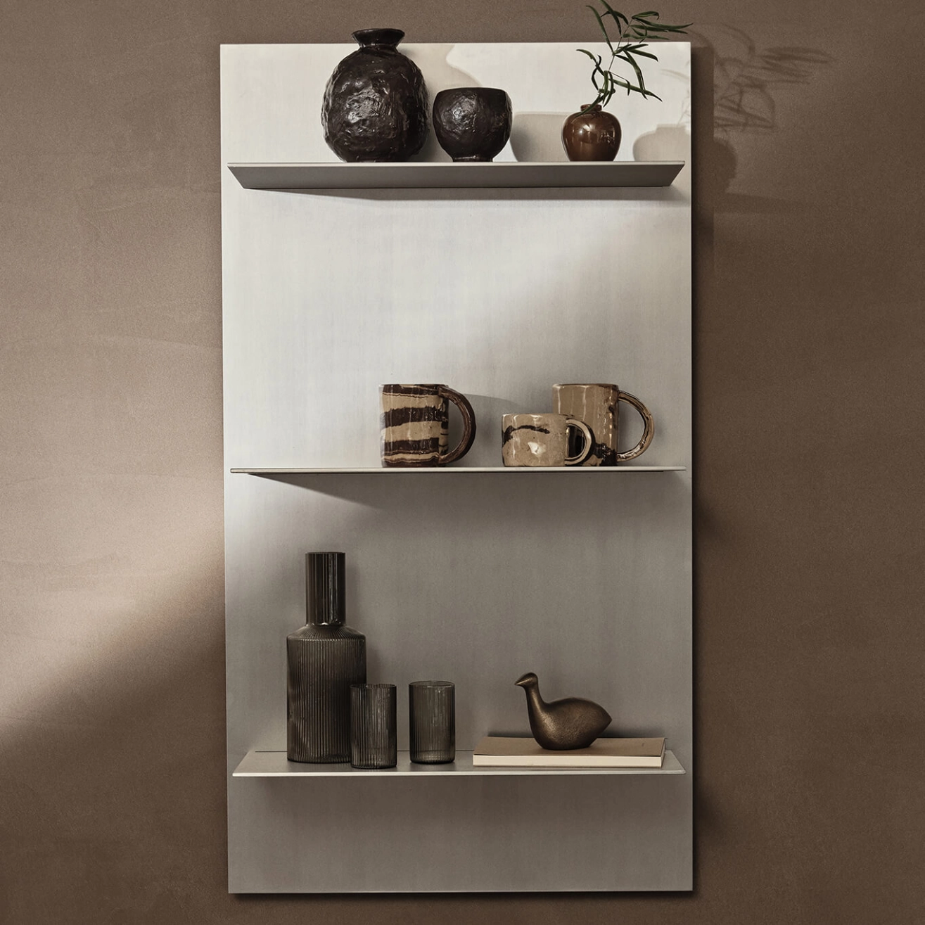 L’Étagère murale Lager de Ferm Living, dans son format vertical triple, propose une approche épurée et fonctionnelle du rangement mural. Conçue en aluminium brossé avec des détails industriels subtils, elle constitue une solution compacte et élégante pour les petits espaces. Idéale pour présenter la verrerie, des objets décoratifs ou des articles du quotidien, cette étagère peut être empilée avec d’autres modules Lager afin de créer un ensemble cohérent et modulable.