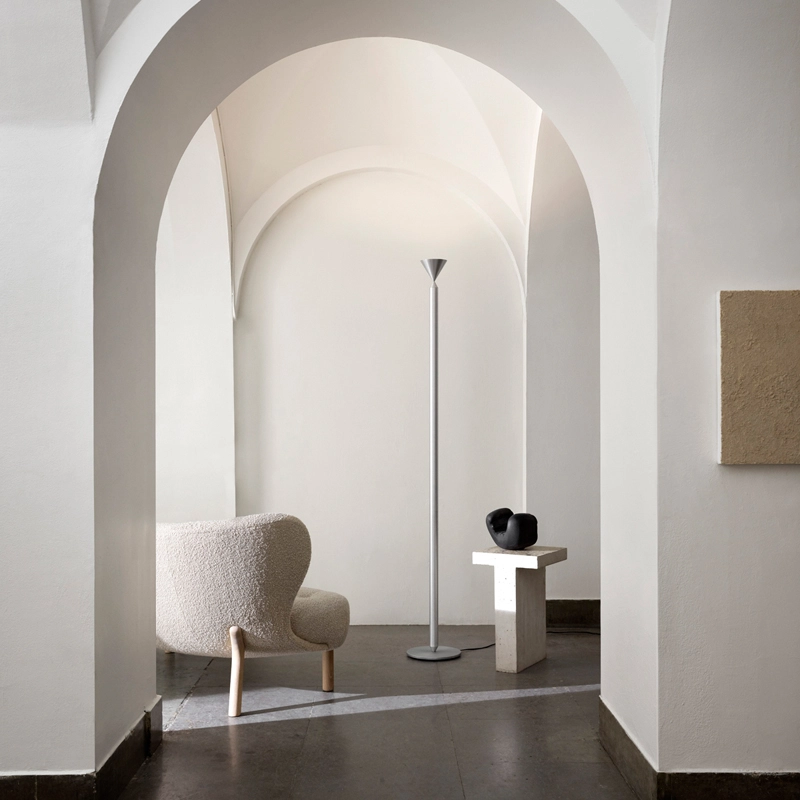 Apollo est un lampadaire créé par les designers Broberg et Ridderstrale pour la marque suédoise Pholc. Apollo est une lampe fabriquée à partir d'une pièce d'aluminium tourné. Ses formes coniques sont associée de manière à paraitre en équilibre les unes sur les autres. La surface du lampadaire est laissée délibérément brute insister sur la présence du matériau et le mettre en valeur. Parfait dans une salon ou une entrée, le diffuseur conique du lampadaire Apollo émet une lumière indirecte.