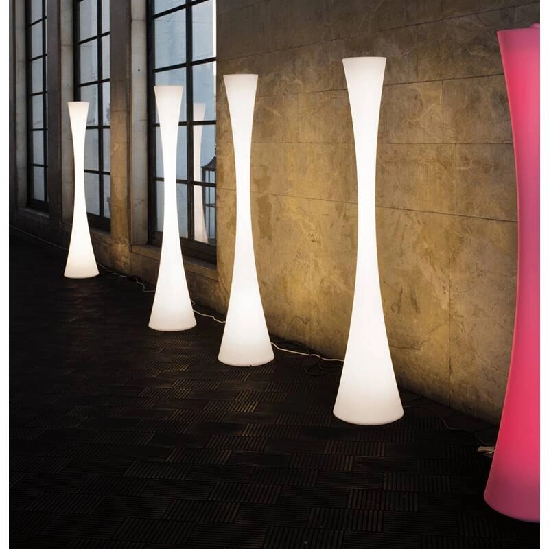 Biconica Pol est composé d’un pied avec diffuseur intégré, d’une enveloppe en polyéthylène blanc moulé par rotation, et d’un variateur de luminosité.