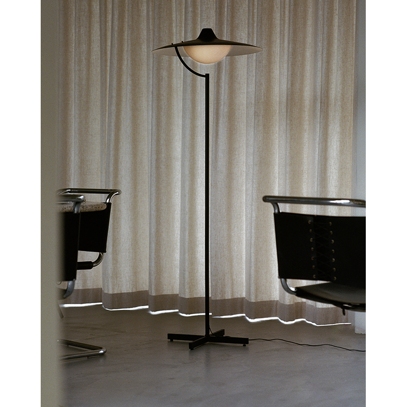 Conçu par le designer français Jacques Biny et édité par DCW Editions, le lampadaire Biny est une pièce emblématique caractérisée par ses lignes épurées, sa finition impeccable et son absence de détails superflus. Ce lampadaire est doté d’un variateur d’intensité lumineuse et de deux gélatines qui permettent de régler la chaleur de la lumière. Biny est aussi équipé de pieds réglables pour s’adapter à tous les sols. Biny de DCW Editions incarne l'esthétique intemporelle du milieu du XXe siècle tout en ajoutant une note contemporaine à tout espace.