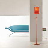 Dessinée par Ludovica + Roberto Palomba pour Foscarini, la collection de luminaires Birdie revisite le traditionnel abat-jour pour donner à chaque lampe une personnalité bien distincte selon le coloris adopté. En blanc, la lampe de table ou le lampadaire se font discrets, presque invisibles, tandis que les versions rouge, orange ou grise apportent une touche de caractère supplémentaire dans votre intérieur. Le variateur d'intensité prend la forme d'une branche rappelant la tige d'un végétal dont le rameau est prêt à accueillir un jeune volatile. Il suffit d'effleurer délicatement cette branche pour que l'intensité lumineuse s'adapte à vos envies. Birdie diffuse une lumière chaude et harmonieuse grâce au diffuseur garantissant l'éclairage sur le plan situé au dessous mais aussi une lumière réfléchie vers le haut. Réalisé en polycarbonate et acier inoxydable, Birdie est un luminaire résistant et extrêmement léger. Le charme de cet abat-jour avec cette petite branche ajoute une note poétique à un plan de travail ou posé au sol dans le salon.