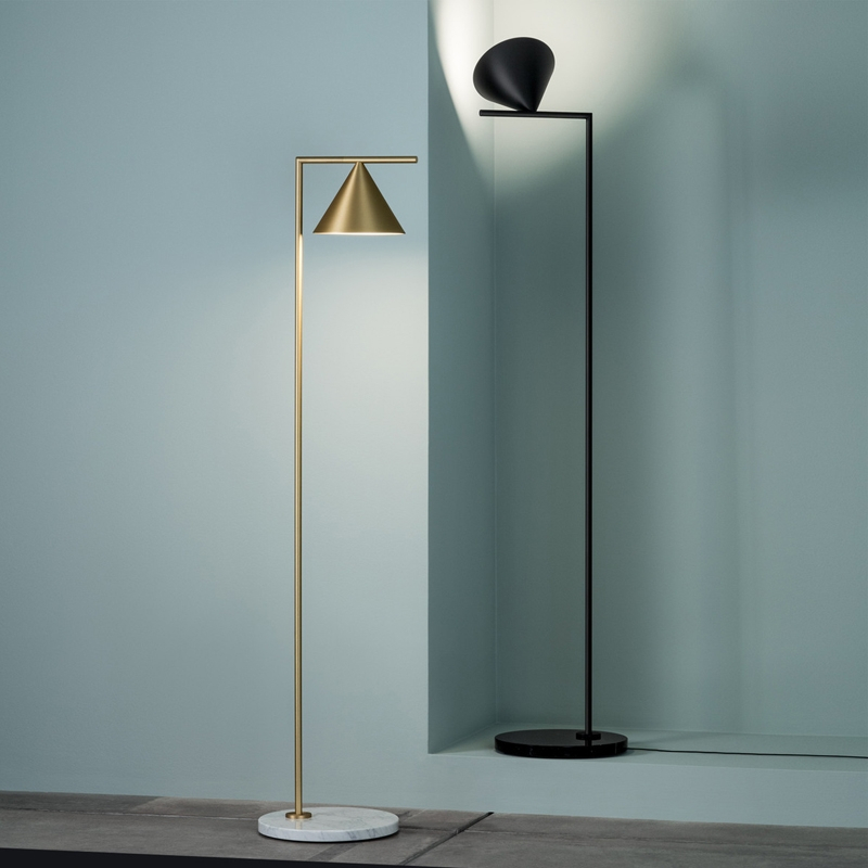 Avec Captain Flint, Michael Anastassiades a voulu créer à la fois un lampadaire qui éclaire vers le haut, créant ainsi une lumière indirecte et une liseuse, avec une émission directe. Le résultat est une lampe particulièrement élégante grâce à ses formes épurées et ses matériaux. Le luminaire Captain Flint est composé d'une structure disponible en laiton brossé ou en acier peint en gris anthracite, associée à une base en marbre. La tête du luminaire pivote à 360 degrés pour orienter facilement la lumière selon les besoins. Edité par