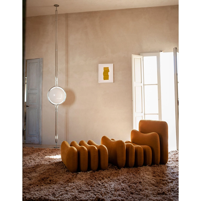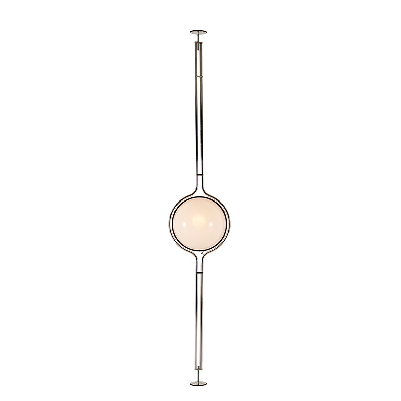 Dessinée en 1972 par Jean-Pierre Garrault et Henri Delord et rééditée par Tacchini, la lampe Dana se présente sous la forme d'une sphère lumineuse pratiquement suspendue dans le temps et l’espace. Sa structure métallique est séduisante grâce à sa simplicité et à l’audace de sa construction. Entre suspension et lampadaire, Dana est une pièce intemporelle, qui possède une forte personnalité. Cette lampe s'inspire d’un voyage au Japon, pendant lequel les deux designers ont vu se lever la pleine lune et passer derrière le Mont Fujiyama. Disponible en deux versions, la lampe Dana Tacchini se fixe entre le sol et le plafond grâce à sa hauteur réglable.