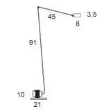 Daphine constituée d'un bras articulé au bout duquel le diffuseur pivote sur 360°. Le transformateur est inclus dans la base.