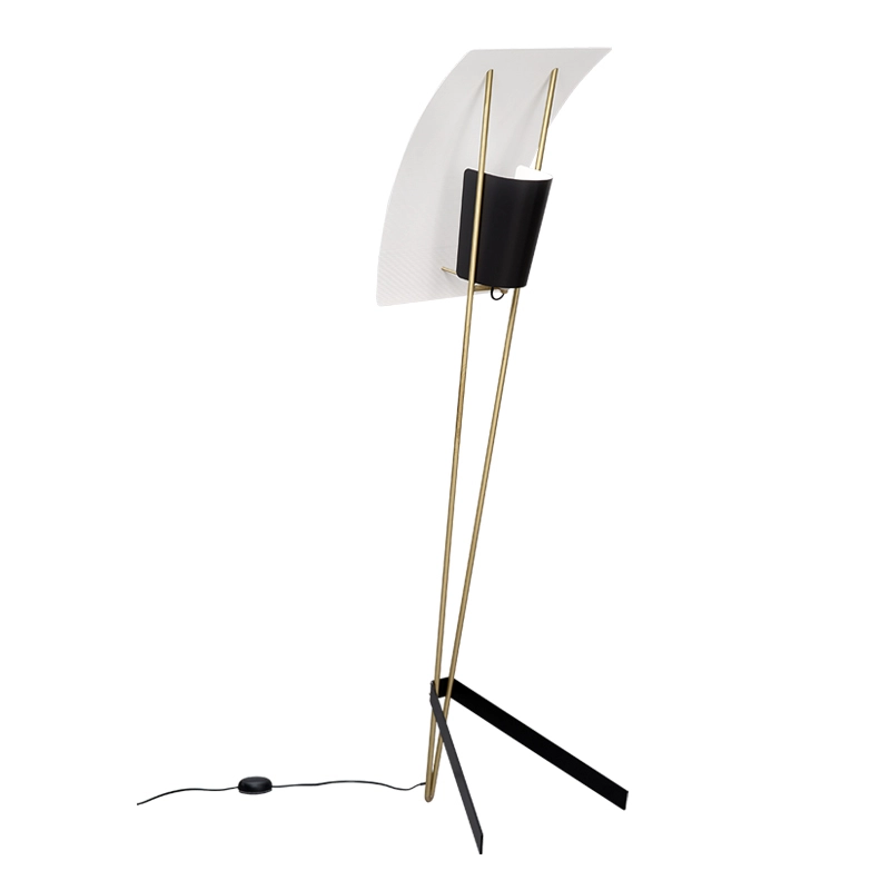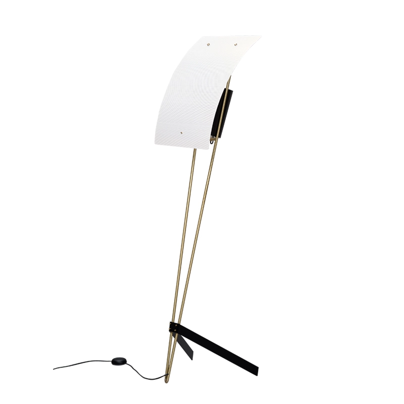 Le « cerf-volant » : tel est le nom que le designer Pierre Guariche lui-même donnait à ce lampadaire saisissant, dessiné en 1958. La voile en tôle perforée du