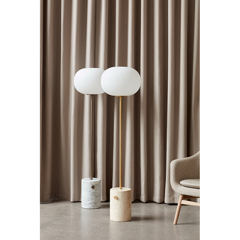 JWDA pour créer un luminaire épuré avec une forte personnalité. Son design simple allie des éléments en contraste pour un effet très élégant : installé sur une tige en acier, le diffuseur de forme elliptique est produit en verre opalin, tandis que la base conserve sa forme caractéristique, créée en marbre avec des bords doux et ponctuée d’un interrupteur décoratif avec variateur d’intensité lumineuse en finition laiton ou bronze. Avec son inspiration tirée des lampes à huile traditionnelles, le