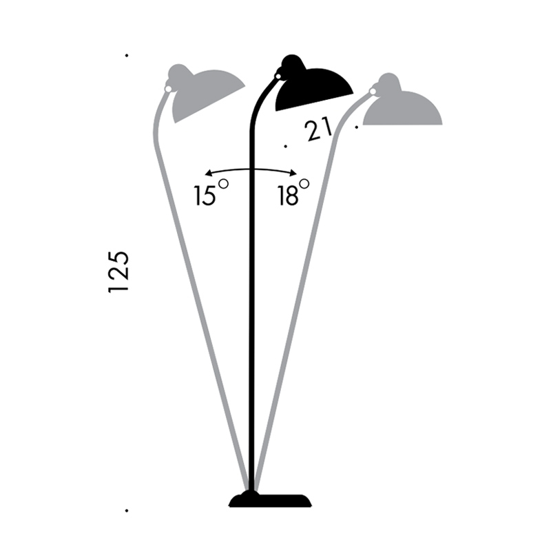 La collection Kaiser Idell se décline plusieurs modèles de lampadaires, lampes de bureau, suspensions et appliques. Dessinée dans les années 30 par l'orfèvre allemand Christian Dell, la lampe Kaiser Idell s'inscrit dans le courant artistique du Bauhaus. Fritz Hansen édite cette lampe dont la spécificité réside dans son diffuseur à la forme si caractéristique et sa rotule mondialement brevetée. L'abat-jour est réalisé à partir d'un acier de grande qualité et peint à la main dans des couleurs brillantes. Les éléments de la lampe chromés sont constitués de laiton poli à la main. Le design de la lampe Kaiser Idell est aujourd'hui reconnu comme un classique légendaire. Le lampadaire Kaiser Idell est inclinable pour adapter la lumière à vos besoins.