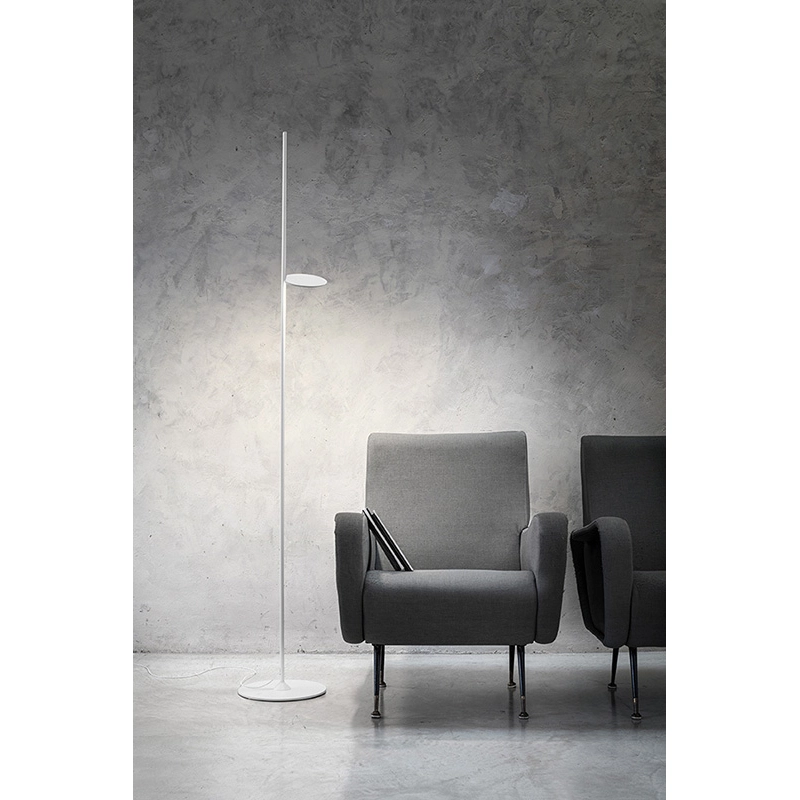 Dessiné par Edin Dedovic, Kimia est un lampadaire minimaliste et très fonctionnel. Le disque lumineux du lampadaire Kimia de Stilnovo peut être tourné et déplacé librement le long de la tige, en faisant varier la direction de la lumière à volonté : vers le mur ou le plafond pour une lumière ambiante ou directe et fonctionnelle pour une lecture relaxante.