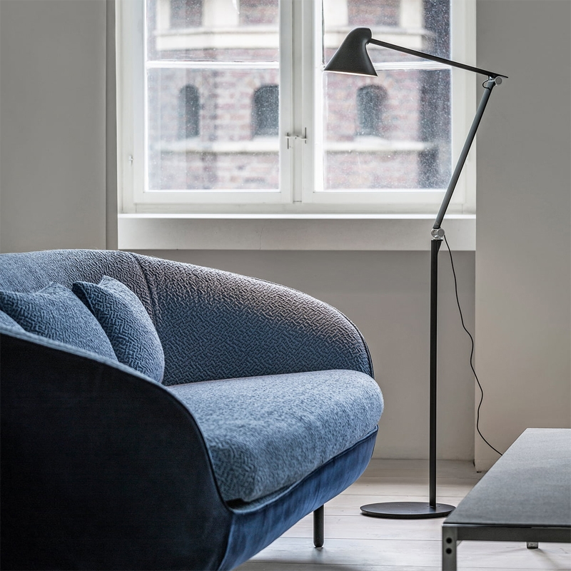 Créé par Nendo pour la marque Louis Poulsen, le lampadaire NJP produit une lumière anti-éblouissante horizontale en renvoyant une partie de la lumière par l'arrière de sa tête, éclairant ainsi l'extrémité du bras. La tête et les bras articulés du lampadaire NJP offrent des possibilités de réglage exceptionnelles, une fonctionnalité qui fait souvent défaut sur les lampadaires classiques. Cette lampe est idéale comme lampe de lecture à côté d’un fauteuil ou d’un canapé, car elle peut être orientée selon les besoins pour fournir un éclairage optimal grâce à ses parties articulées. L'intérieur de l'abat-jour est peint en blanc afin de réfléchir une lumière confortable et diffuse.