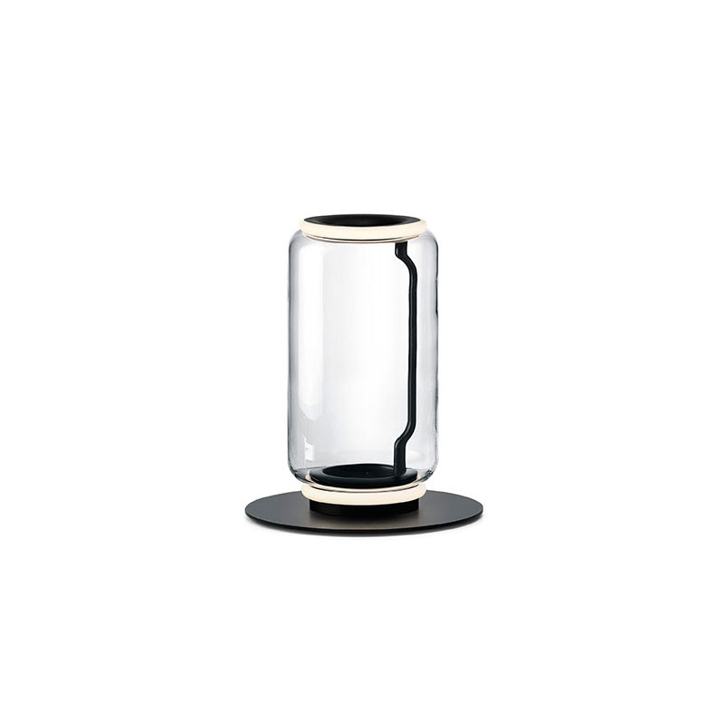 Flos sont constituées d’un empilement de modules transparents, fabriqués artisanalement en verre soufflé. Les modules sont maintenus par une structure interne en métal laqué noir. Les formes géométriques se superposent donnant naissance à des constructions sculpturales qui offrent un équilibre extraordinaire entre les proportions et l’élégance des matériaux.