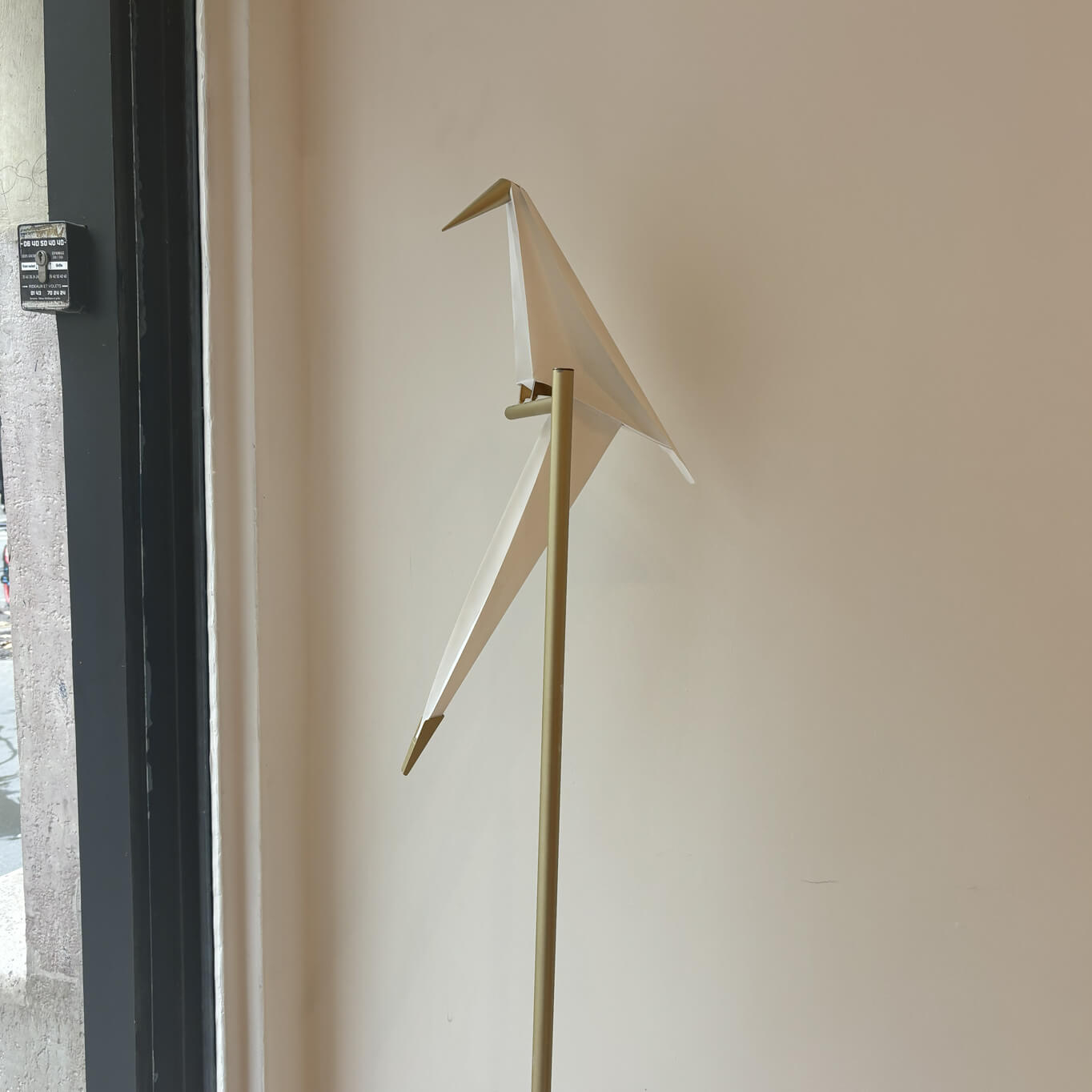 De délicats oiseaux en papier sur leurs perchoirs, c’est là toute l’essence du lampadaire d'occasion Perch, créée par Umut Yamac et éditée par Moooi.Chacun des luminaires Perch présente un aspect différent de ce design charmant réduit à l’essentiel : une forme sophistiquée qui enveloppe une fonction optimale. Toute la subtilité de Perch est comprise dans l’équilibre d’une fine structure en métal doré, qui relie la base ou la canopée de la lampe à son diffuseur, dissimulé dans la silhouette d'un oiseau. Ce modèle présente des traces d'usures mais n'affectent pas son esthétique général ni sa solidité. Les luminaires d'occasion Perch de Moooiémettent une lumière douce et chaude, idéale pour éclairer tous les intérieurs et leur apporter un décor particulièrement raffiné.
