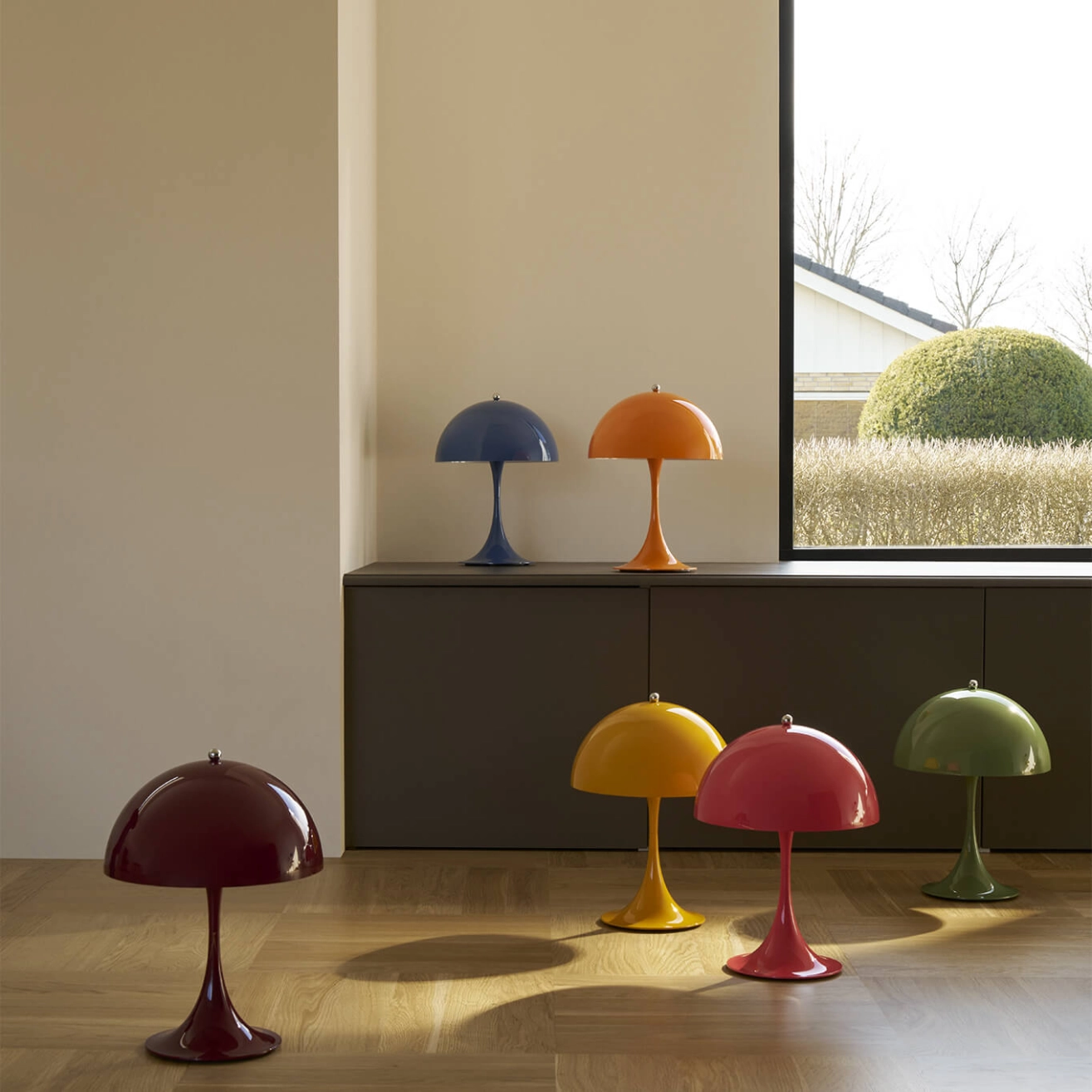 Créée en 1971, Panthella est l'une des créations les plus célèbres de Verner Panton. Le principe de base visait à créer une lampe dont la base ainsi que l'abat-jour feraient office de réflecteur. La source lumineuse des lampes Panthella est cachée avec élégance derrière un abat-jour hémisphérique en acrylique blanc laiteux et une base blanche en forme de trompette qui contribue à une superbe distribution de la lumière ainsi qu'à une forme bien équilibrée. Les formes incurvées de la lampe à poser Panthella sont caractéristiques des travaux des designers danois, qui cherchaient avant tout à créer des objets au design innovant et futuriste. Ce modèle emblématique de 250 mm, édité par Louis Poulsen, est une réplique fidèle à échelle réduite de Panthella pouvant être utilisée n’importe où, car elle ne dépend pas d’une prise de courant. Dans cette version, la lampe Panthella 250 Portable se recharge par cordon USB. Elle est ainsi facile à transporter pour créer une agréable atmosphère luxueuse sur votre terrasse, à la terrasse d’un restaurant, ou dans n’importe quel endroit sans accès au réseau électrique.