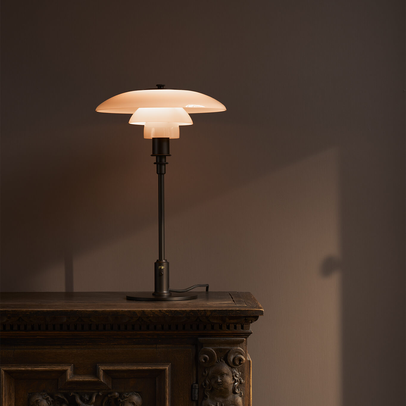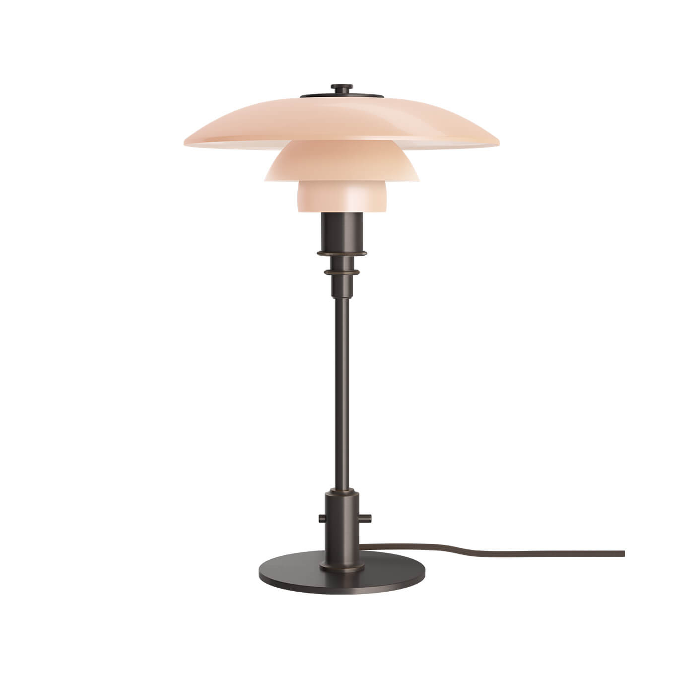 La PH 3/2 Table Dusty Terracotta est une lampe de table iconique dessinée par Poul Henningsen pour Louis Poulsen. Dans cette édition limitée, les célèbres abat‑jours prennent une teinte « dusty terracotta », un verre soufflé à la bouche en quatre couches qui réinterprète les couleurs originales avec douceur et profondeur. Assorti d’une structure en laiton vieilli laqué, ce luminaire mêle élégance rétro et chaleur contemporaine. Reprenant le système PH qui vise une lumière diffuse, homogène et sans éblouissement, la PH 3/2 produit une atmosphère enveloppante, parfaite sur une table d’appoint, une console ou un chevet. Le verre terracotta, poli à l’extérieur mais sablé à l’intérieur, tamise la lumière d’une manière subtile, tandis que le laiton, avec sa finition patinée, confère à la lampe un caractère vivace et évolutif.