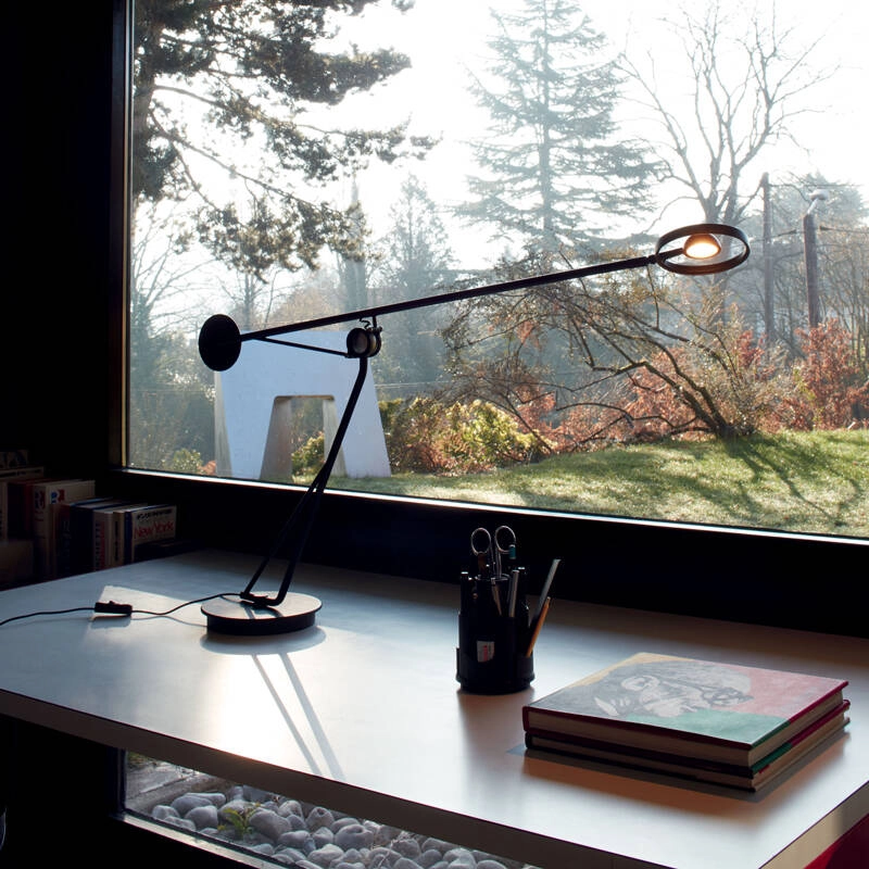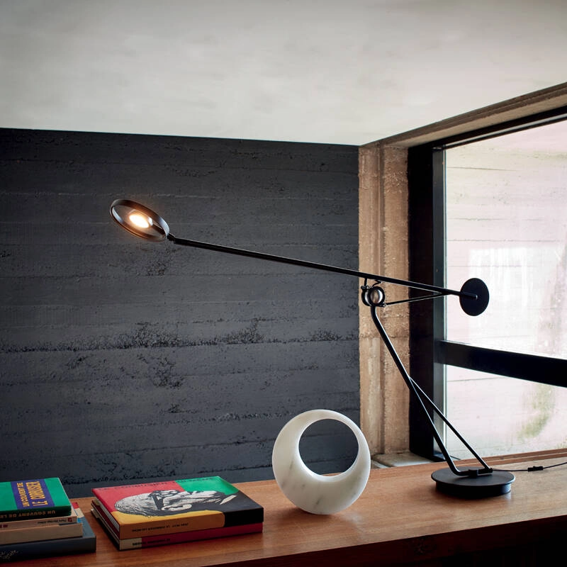 Une sphère en guise d’articulation, qui laisse place à d’infinies directions. Une sphère qui n’a ni gauche, ni droite, ni haut, ni bas. En tant qu’élément central de la lampe AARO TABLE, cette sphère permet à tout le reste de graviter autour d’elle. La géométrie, l’équilibre, le frottement. Tout repose sur elle. AARO TABLE de DCW éditions est un objet qui semble flotter dans l’air, gravitant autour de sa pièce centrale, comme des planètes en orbite.