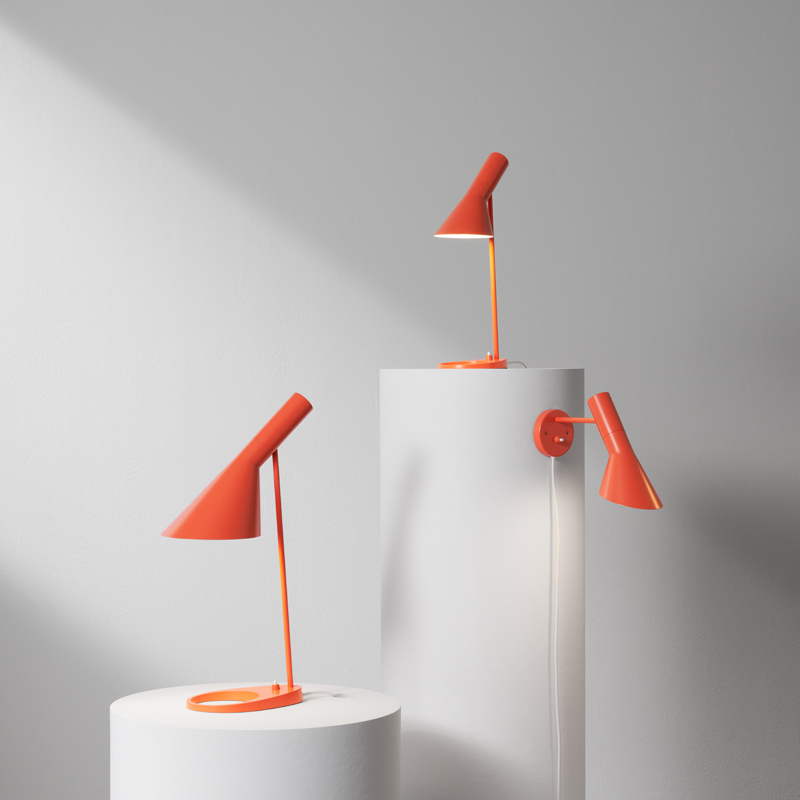 Dessinés par Arne Jacobsen en 1957 pour le SAS Royal Hôtel à Copenhague (Radisson Blu), les luminaires AJ faisaient partie, à l’origine, du concept de design complet créé pour l'Hôtel. Editée par Louis Poulsen, la lampe de table AJ Mini possède une expression graphique iconique, qui s’aligne merveilleusement avec le style de design de Jacobsen et tout en offrant un contraste avec la courbure de certains meubles du SAS Royal Hotel. Le design intemporel de la lampe permet une adaptation à tous les intérieurs et, au fil des ans, les palettes de couleurs ont été adaptées aux tendances des intérieurs modernes. L’angle de l’abat-jour de la lampe AJ Mini peut être réglé pour optimiser la distribution de la lumière. L’abat-jour est peint en blanc à l’intérieur pour diffuser une lumière douce et confortable.