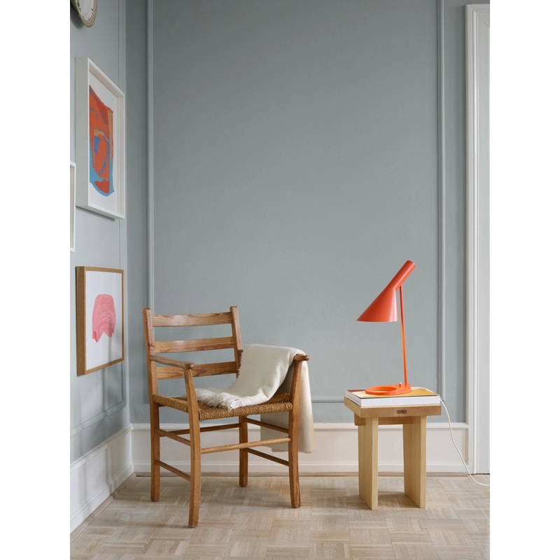 Dessinés par Arne Jacobsen et édités par Louis Poulsen en 1960 pour le SAS Royal Hôtel à Copenhague (Radisson Blu), les luminaires AJ faisaient partie, à l’origine, du concept de design complet créé pour l'Hôtel. Arne Jacobsen a non seulement dessiné les plans de l’hôtel, mais aussi imaginé dans les moindres détails la décoration intérieures de ce dernier. Bon nombre de produits dessinés à cette occasion sont aujourd'hui des icones du design, comme les fauteuils Egg et Swan. Les lampes AJ ont obtenu également une renommée mondiale. Le luminaire émet une lumière asymétrique dirigée vers le bas. La tête de la lampe à poser AJ table, est dirigeable à 60°, peut être inclinée afin d’optimiser l’éclairage. La lampe à poser AJ table présente un design graphique et contemporain reposant sur deux formes géométriques : un cylindre et un cône qui forment son abat-jour orientable. Cet abat-jour est associé à une base ronde sur laquelle est placé l’interrupteur. L’intérieur de l’abat-jour est peint en blanc afin de rendre la lumière douce et confortable. Cette lampe à poser dispose d’un trou situé à la base de la lampe, étant à l’origine conçu pour loger un cendrier, mais apporte aujourd’hui également une part de légèreté et de finesse à la structure. Les luminaires AJ de Louis Poulsen restent au fils du temps des classiques modernes dans le domaine des luminaire design. La lampe à poser AJ table est idéale pour éclairer un couloir, un chevet ou offrir une belle ambiance lumineuse à un salon par exemple. La collection de luminaires AJ est disponible en lampe de table, lampadaire et en applique murale. Pour fêter le 60ième anniversaire du modèle de la lampe à poser AJ table offre une nouvelle sélection de couleurs et de finitions inspirées du travail d’Arne Jacobsen et éditées par Louis Poulsen fabricant danois de luminaires depuis 1874.