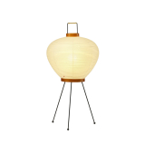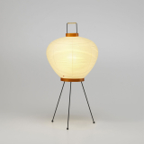 Chacun des luminaires dont Akari 3A est fabriqué à la main : l’ossature de la lampe est obtenue par des tiges de bambou tendues, enveloppées de fines bandelettes de papier washi collées à la structure. Le corps des lampadaires et lampes à poser repose sur un élégant piètement en acier peint.