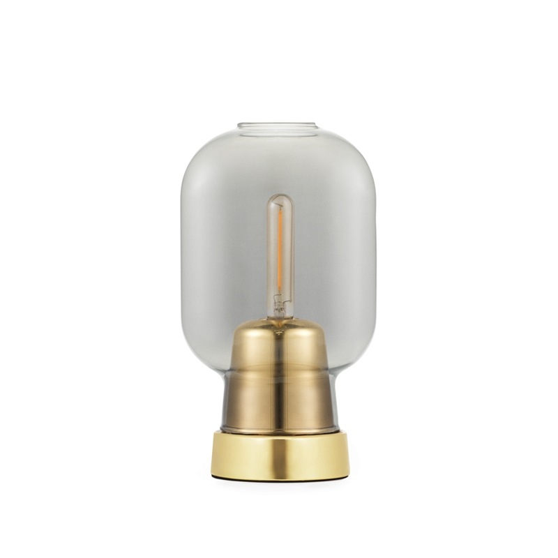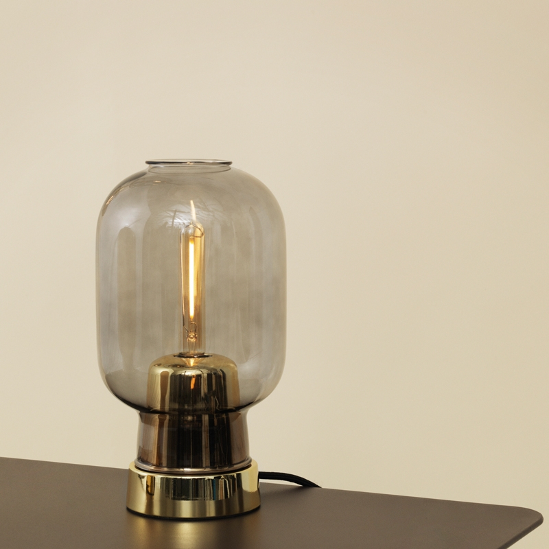 Pour Normann Copenhagen, le designer danois Simon Legald a conçu Amp, une gamme de lampes raffinées. L'idée de la forme de ces lampes est venue au designer un jour où il restaurait une vieille radio datant des années 1960. La forme ovale simple des lampes et la lumière qu'elles émettent y font ouvertement référence, tout comme le nom Amp, qui reprend l'abréviation du termes anglais « tube amplifier ». Les deux modèles de suspension et de lampe de table de la série Amp existent désormais en laiton. Le métal brillant reflète son environnement en lui donnant un éclat flamboyant qui apporte personnalité et brio. Le modèle en laiton se décline avec deux types d'abat-jour : un en verre fumé transparent, l'autre en verre blanc opale.