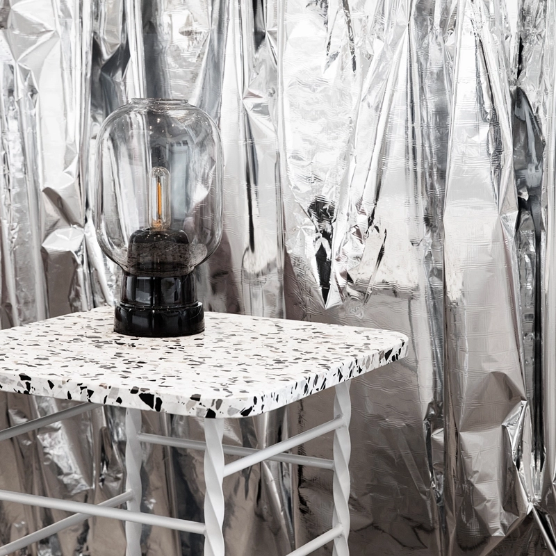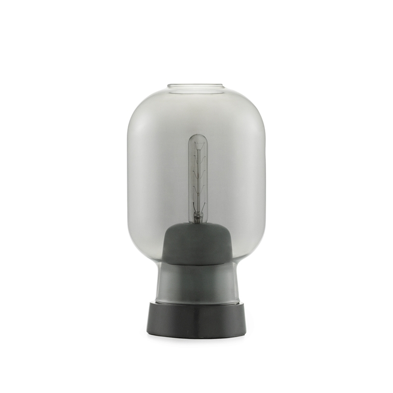 Pour Normann Copenhagen, le designer danois Simon Legald a conçu Amp, une gamme de lampes raffinées. L'idée de la forme de ces lampes est venue au designer un jour où il restaurait une vieille radio datant des années 1960. La forme ovale simple des lampes et la lumière qu'elles émettent y font ouvertement référence, tout comme le nom Amp, qui reprend l'abréviation du termes anglais « tube amplifier ». Le designer a voulu souligner visuellement les détails indispensables, comme par exemple la manière dont l'abat-jour repose sur le culot. Ces lampes de Normann Copenhagen sont dotées d'un câble textile assorti et la lampe de table possède un variateur d'intensité.