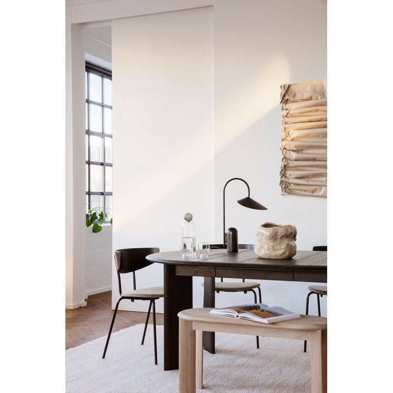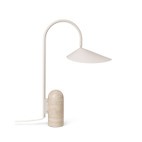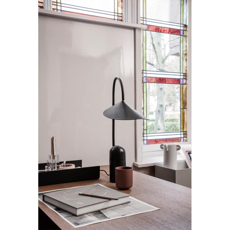 lampe à poser Arum de Ferm Living se caractérise par sa base en marbre massif combinée à un abat-jour léger à la forme organique. Réussissant un équilibre parfait avec la structure décentrée de la lampe, la base en marbre contrebalance la douceur avec laquelle l’abat-jour est suspendu, tel une feuille, à l’arc en métal. L’intérieur de l’abat-jour est peint en blanc mat, ce qui permet une lumière douce, diffusée uniformément. Parfaite sur un bureau ou un buffet, la