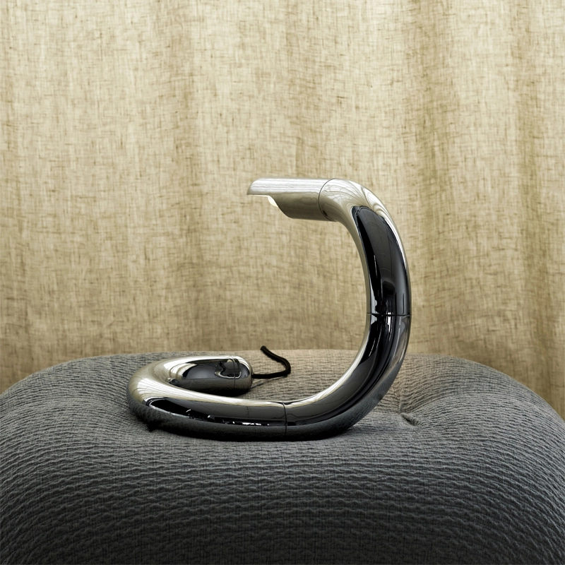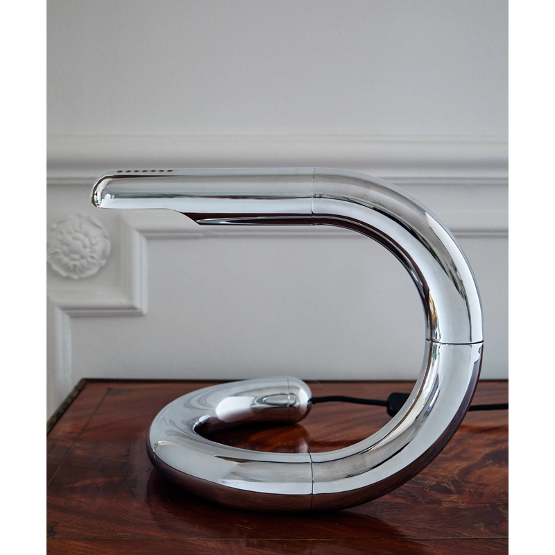 De forme serpentine, magnifiquement équilibrée et brillante, la lampe Aspide de Gianfranco Frattini éditée par Gubi est à la fois une pièce de design pratique et une déclaration de design irrésistiblement ludique. Développée pour la première fois en 1970, Aspide est une lampe de table orientable qui ne ressemble à aucune autre lampe avant ou après elle, mais qui exprime toujours les goûts matériels et esthétiques de son époque.