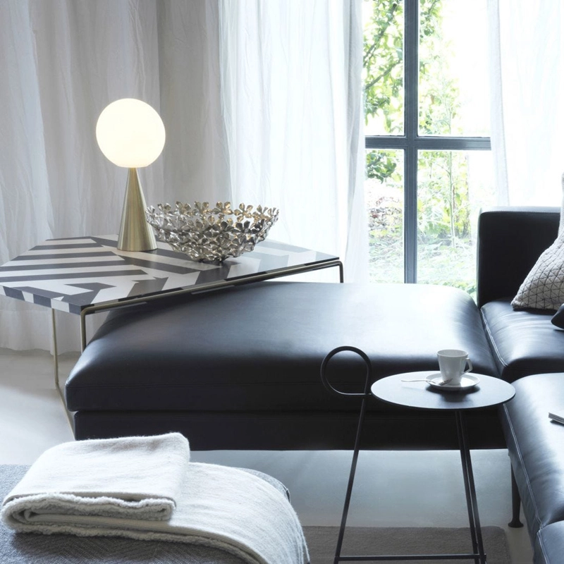 Une simple sphère, posée dans un équilibre apparemment impossible, sur un cône qui lui sert de base. Voici l'un des nombreux tours de magie de la lampe à poser Bilia du designer italien Gio Ponti, conçu en 1932. Le contrepoids de deux formes géométriques élémentaires crée Bilia, un luminaire original, parfaitement proportionné. Une composition sans prétention, enrichie par l'extraordinaire équilibre de ses proportions et la discrétion élégante des matériaux non réfléchissants. La lumière est diffusée et valorisée par la simplicité géométrique du design. En concevant Bilia, Gio Ponti avait imaginé une version plus petite dans une gamme de couleurs dynamiques. À partir des notes manuscrites du projet original, Fontana Arte propose aussi Bilia Mini dans de nouvelles variations chromatiques à couper le souffle.