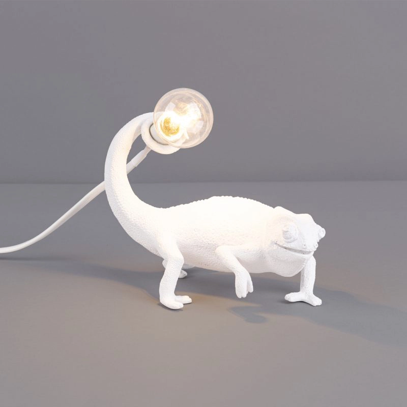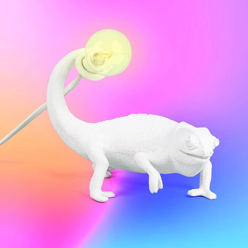 Avec Chameleon, le designer Marcantonio Raimondi Malerba a créé pour Seletti une série de luminaires représentant trois caméléons blancs qui prennent la pose pour attirer l'attention. Lorsqu'ils se sentent observés, ils restent immobiles, brillants de lumière avec leur queue virevoltante. Décontractées et extraverties, les lampes à poser et appliques Chameleon de Seletti sont la décoration parfaite pour ajouter une touche d'originalité dans un intérieur qui ne craint pas les regards indiscrets. Avec des dimensions réduites, ces luminaires originaux trouvent leur place dans toutes les pièces de la maison.