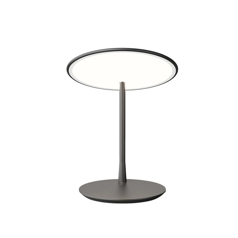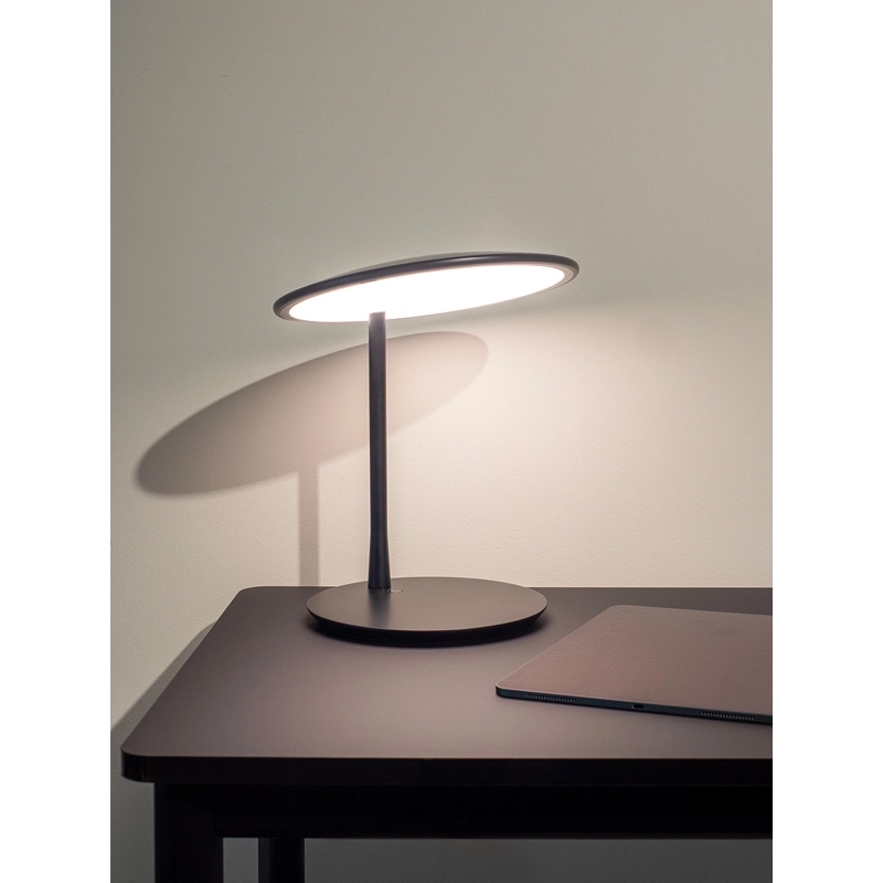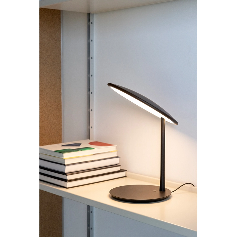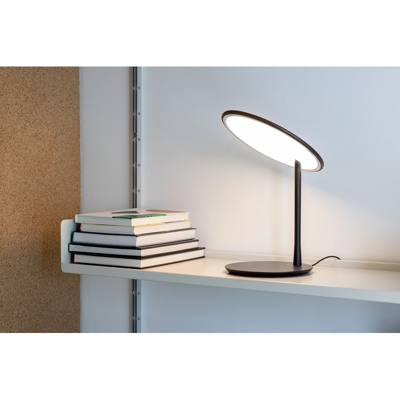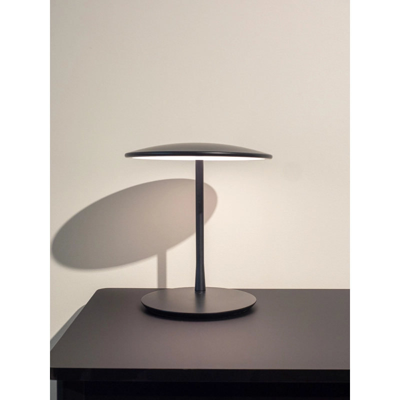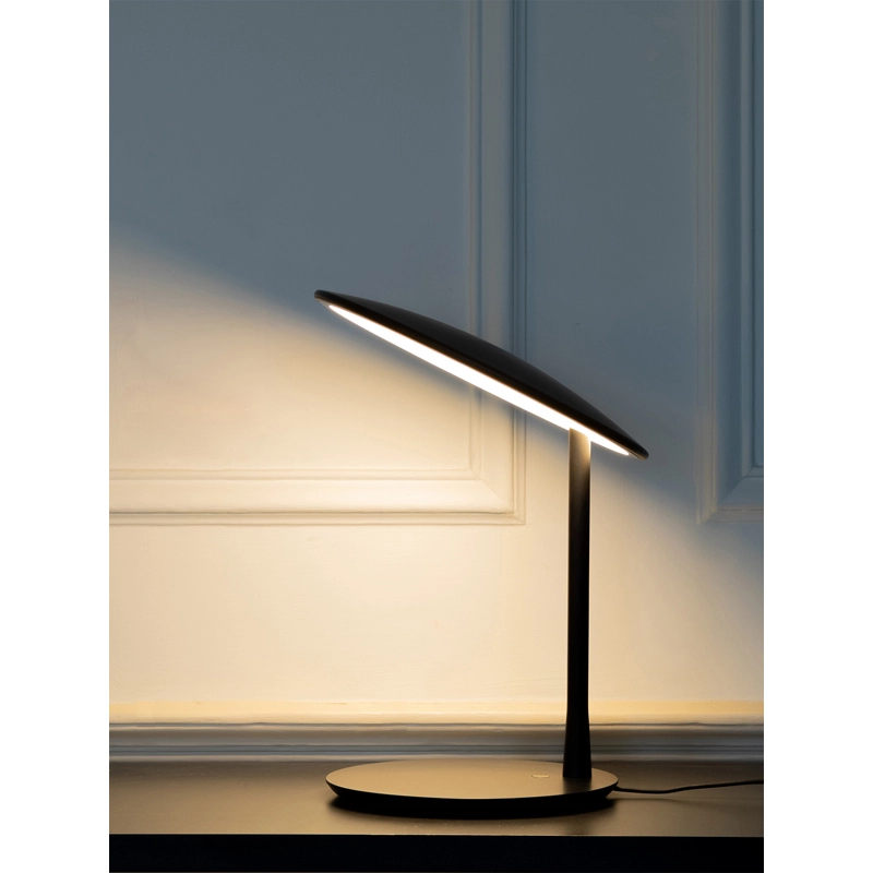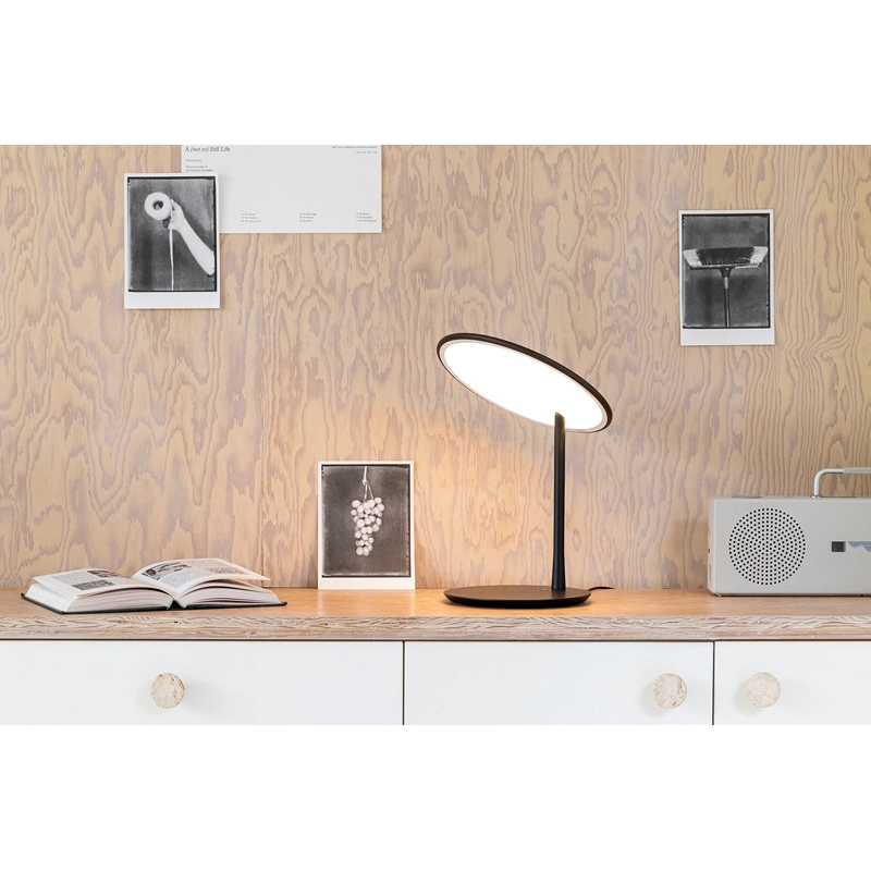 Dessinée par Tim Rundle, Disc est une lampe à poser élégante et épurée. Elle se distingue par son abat-jour en forme de disque plat et fin, équipé d’une source LED intégrée et d’un diffuseur qui émet une lumière douce, chaleureuse et uniforme. L’abat-jour peut être orienté à plat ou incliné vers le haut pour éclairer une table. Editée par Nine, la lampe Disc est disponible en noir neutre, qui amplifie la forme, ou bien avec un abat-jour en laiton brossé associé à une base noire.
