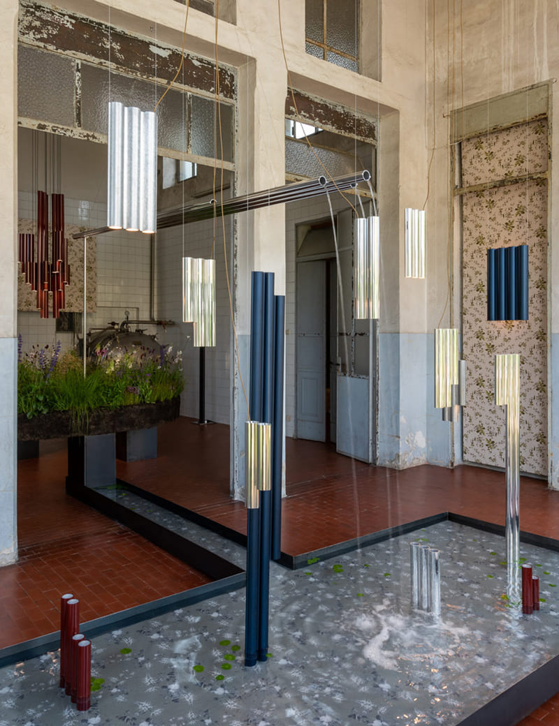 Lambert & Fils, composée de lampes, de suspensions, et de lampadaires a été inspirée par les propriétés réflectives que diffuse le laiton. Les luminaires de la collection sont dotés d’un design géométrique d'une grande précision, épuré et distingué par l'utilisation de formes rondes et de lignes pures. L'ensemble, réalisé avec une remarquable finesse, juxtapose l'aspect brut des ampoules dénudée à la texture riche du laiton. Fonctionnelle sans manquer d'élégance, la