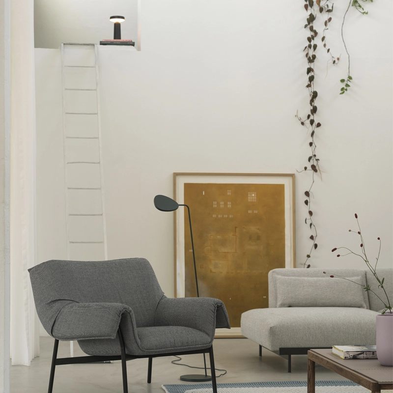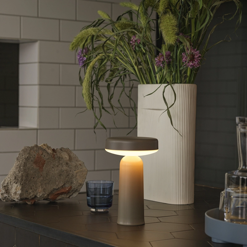 Inspirée par les formes des lampes de table traditionnelles, la lampe portable Ease de Muuto transforme cette typologie dans un format qui peut être emporté partout. Ease offre une lumière de haute qualité, sans éblouissement, avec 3 niveaux de gradation, établissant un équilibre entre lumière d'ambiance et lumière fonctionnelle. Le design de la lampe portable Ease est d'une légèreté évidente. Sa base légèrement évasée imite le rebord d'un vase dans un geste d'ancrage qui permet à la base d'être plus fine et plus facile à saisir. La lampe portable Ease est une amie humble au caractère bien trempé, qui fonctionne seule ou en répétition dans n'importe quel environnement, qu'il s'agisse d'un chevet, d'un coin lecture, d'un bureau à domicile, d'une table de café, d'un espace de travail ou d'une bibliothèque.  Editée par la maison danoise Muuto, la lampe portable Ease est adaptée à une utilisation en extérieur avec un indice IP54. La lampe Ease est protégée et testée contre les corps étrangers solides, tels que la pénétration de la poussière, ainsi que les liquides, tels que les éclaboussures d'eau sous tous les angles.