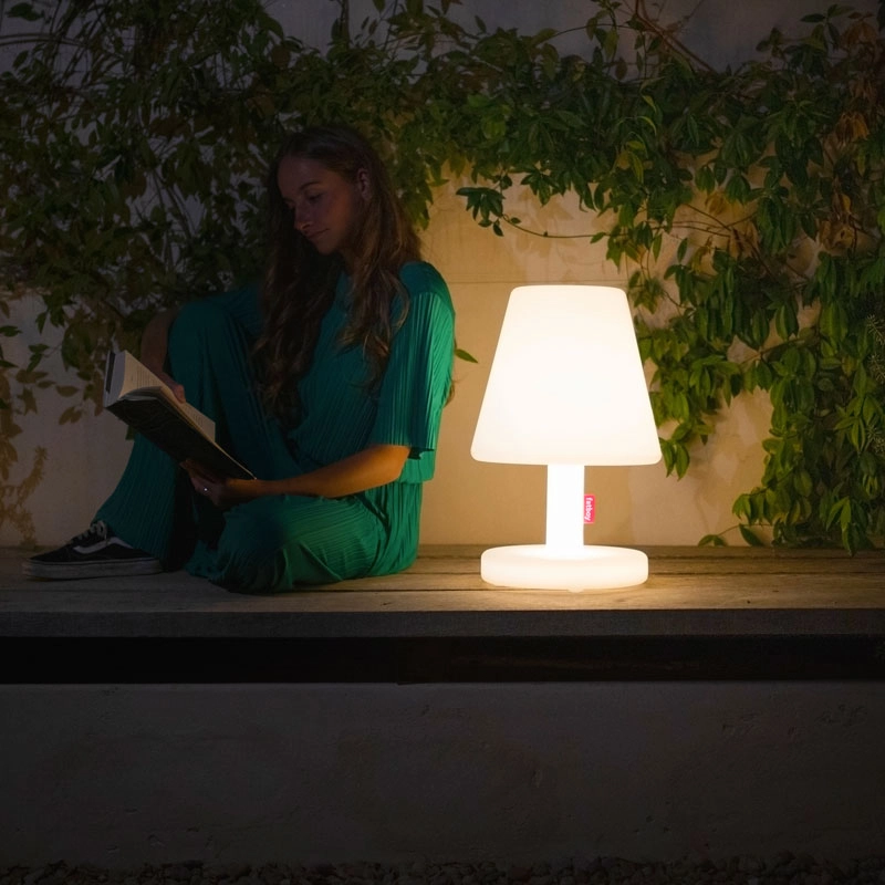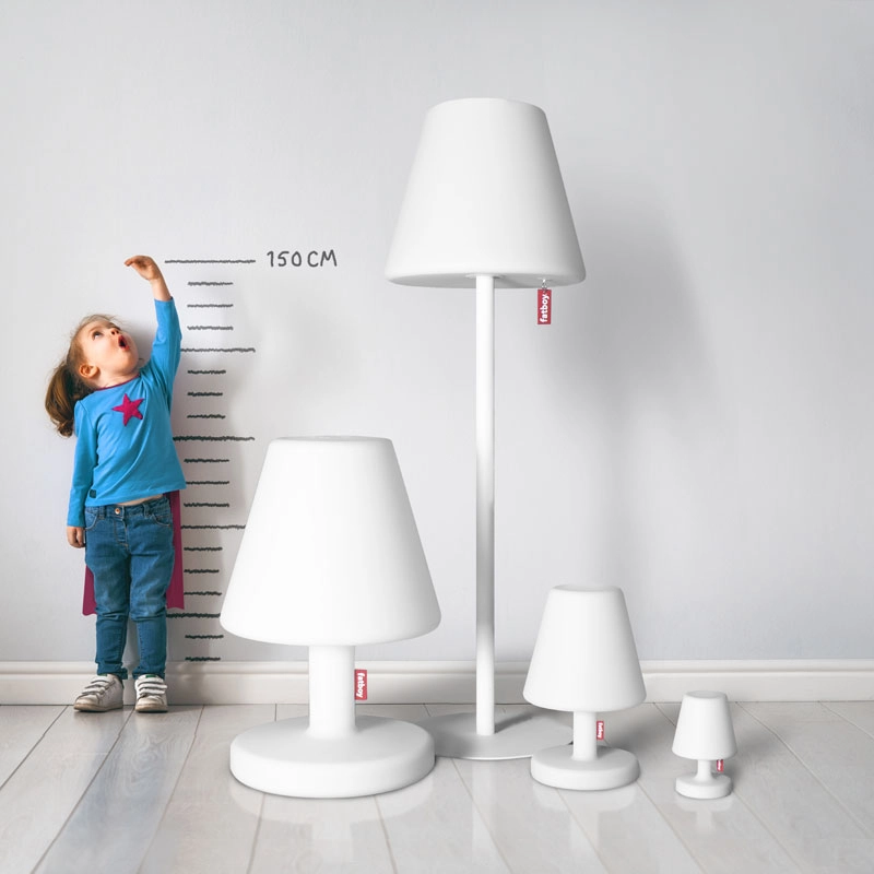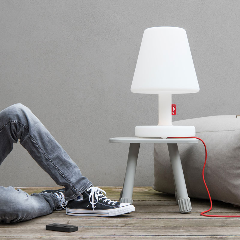 Edison The Petit et Edison The Grand. Cette lampe est aussi esthétique que robuste, grâce à un matériau de fabrication unique. Avec sa couleur blanche subtile, cette lampe de table design apportera sans aucun doute une valeur ajoutée à votre environnement, tant intérieur qu’extérieur. Contrôlez facilement votre lampe