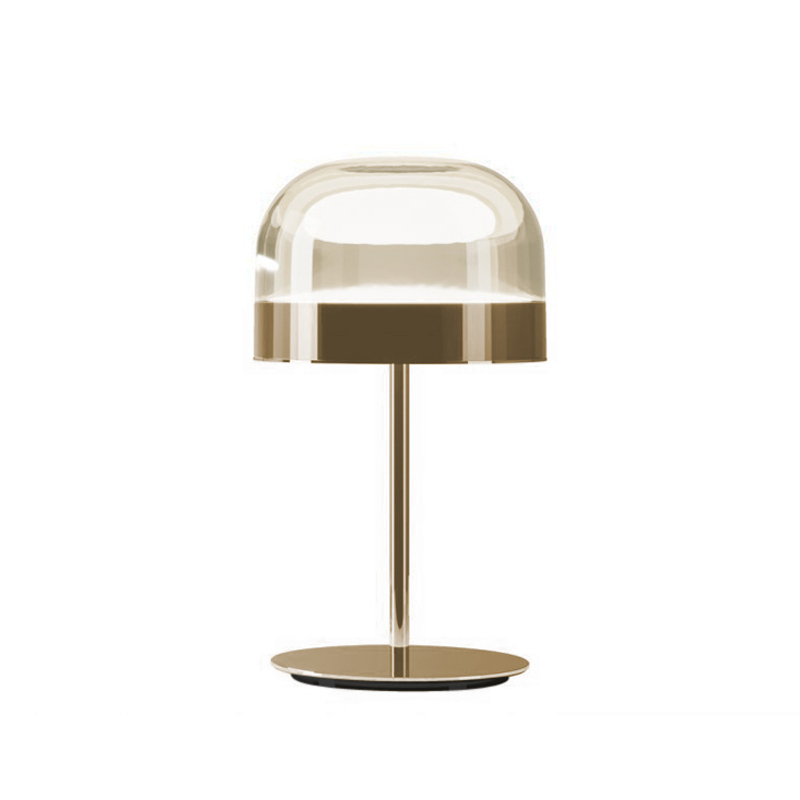Equatore est une réinterprétation contemporaine de la lampe classique avec un abat-jour en verre. Alors que l'abat-jour traditionnel sert à contenir la source de lumière à l'intérieur, dans cette famille de lampes, l'abat-jour est paradoxalement vide, la lumière étant générée par deux disques lumineux placés à l'intérieur d'une bande métallique centrale, visible sur l'abat-jour, qui évoque la ligne de l'équateur. La lumière produite par les Led, grâce à des écrans internes disposés en couches, est distribuée régulièrement sur la surface des disques, les éclairant comme par magie. Le disque inférieur dirige la lumière vers le bas, le disque supérieur illumine la cloche en verre pour une lumière douce et diffuse. Editée par
