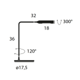 l 32 x h 36 cm, base ø 17,5 cm, diffuseur ø 2,6x l 18 cm