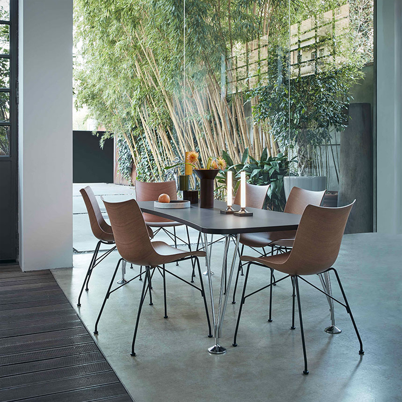 Né à Paris en 1949, il fait partie des designers actuels les plus originaux et prolifiques. Philippe Starck est devenu un monstre sacré et consacré du design international. Les chaises et fauteuils de Philippe Starck incarnent un design iconique, audacieux et intemporel, mêlant innovation, confort et élégance dans chaque création. Se proclamant autodidacte après un passage à l’école Camondo, il est déjà chef d’entreprise avant même sa majorité. Touche à tout inspiré, il n’hésite pas à revisiter les styles et les icones du passé. S’il œuvre régulièrement dans l’univers du luxe, on lui doit aussi d’avoir su démocratiser le design. Ses collaborations industrielles sont multiples et soutenues, tout particulièrement dans le mobilier que ce soit chez Cassina, Driade ou Kartell. Chez ce dernier, le bridge Mademoiselle allie l’aérienne structure en polycarbonate à une confortable assise en polyuréthane houssé de tissus emblématiques de différents stylistes italiens (Missoni, D&G ou Valentino). Il remporte des prix importants comme le Grand Prix National de la Création industrielle et l’Honor Award de l’American Institute of Architects. Philippe Starck se dépeint comme « un architecte japonais, un scénographe américain, un designer industriel allemand, un directeur artistique français, un designer de meubles italien ». Il collabore également avec des éditeurs de luminaires et d’accessoires d’art de la table tels que Baccarat ou Flos avec la collection KTribe.
