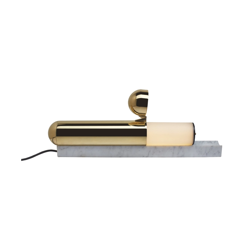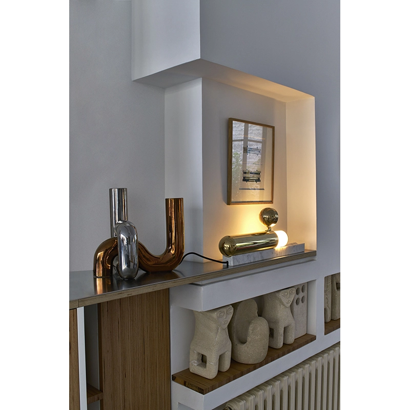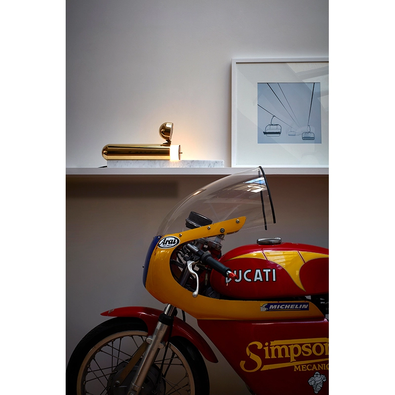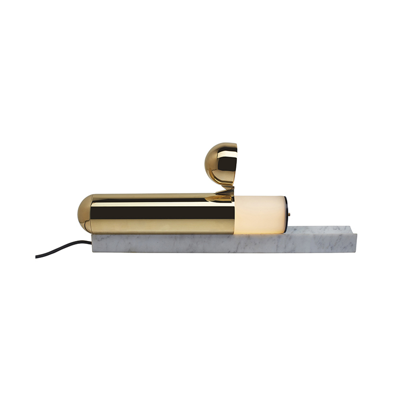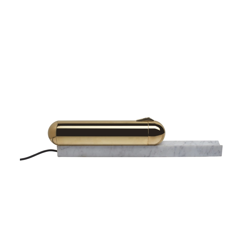 socle marbre, corps laiton poli, tube lumineux polycarbonate