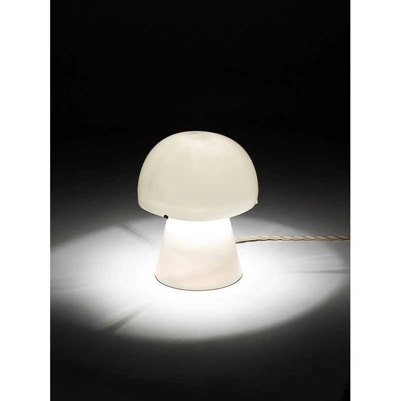 La lampe de table Joe 1, créée par la designer et céramiste Anita Le Grelle pour Serax, s'inspire des formes organiques des champignons des années 60. Avec sa silhouette nostalgique et naïve, Joe 1 convient parfaitement aux chambres d'enfant, mais pas seulement. Le socle et l'abat-jour cette lampe à poser abritent chacun une ampoule, illuminant l'intérieur grâce à la porcelaine bone china translucide. Disponible en deux versions, la petite lampe Joe 1 est équipée d'un cordon en tissu doré avec interrupteur.