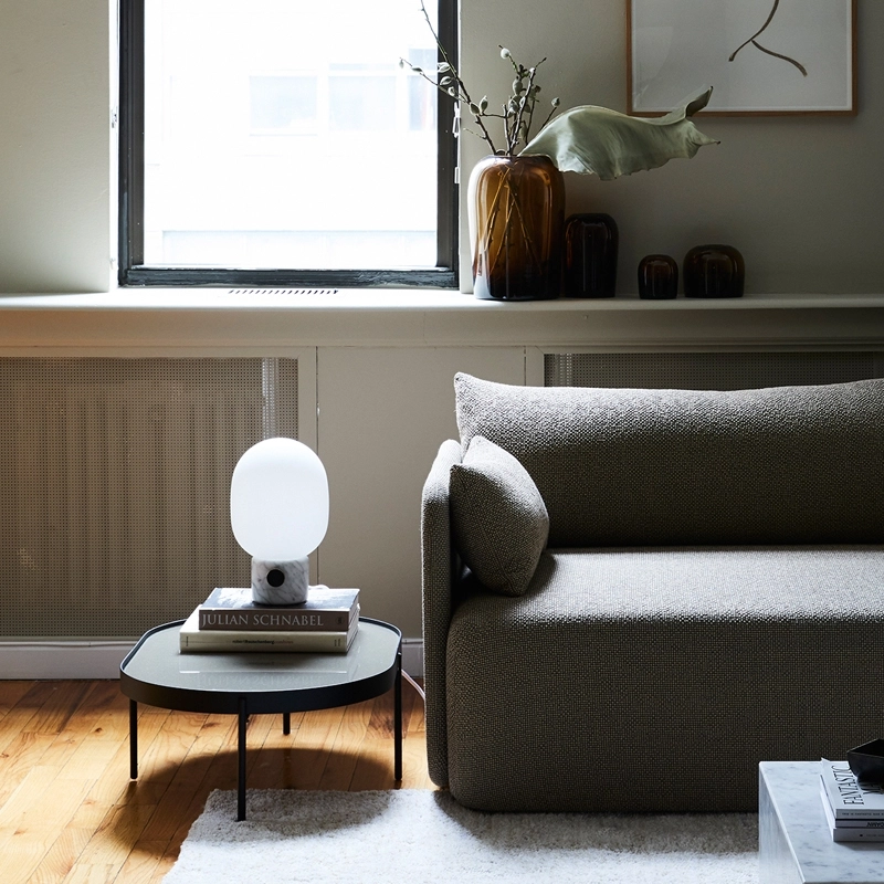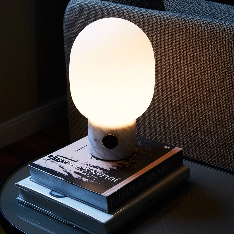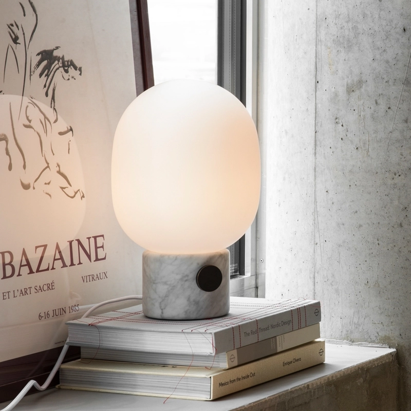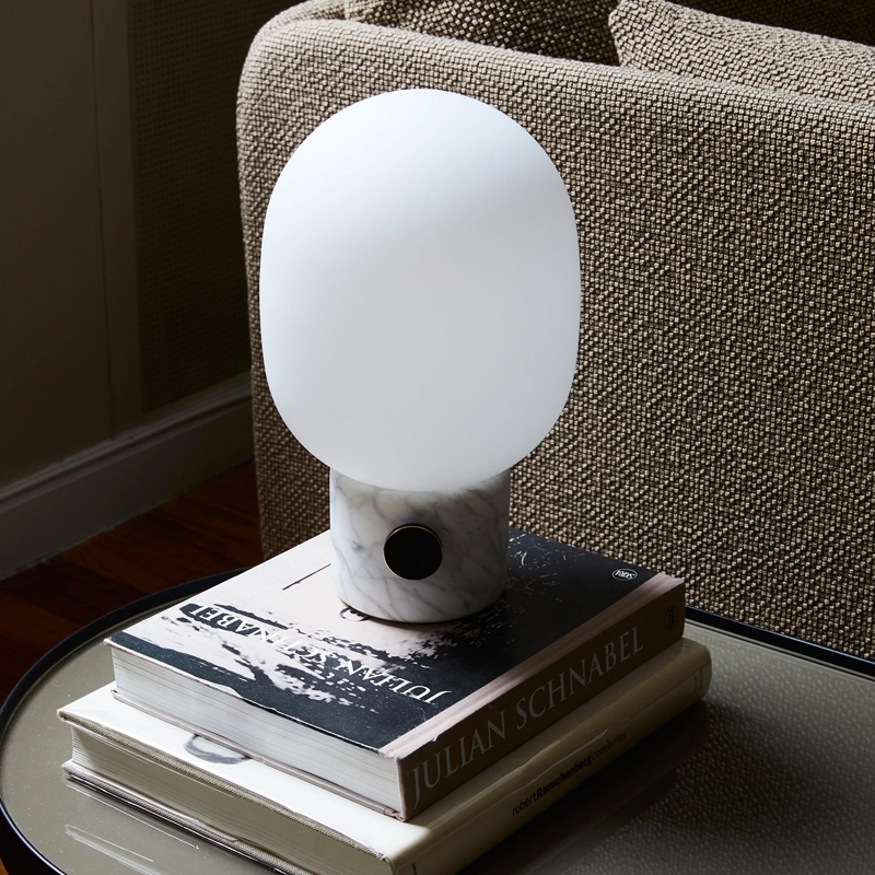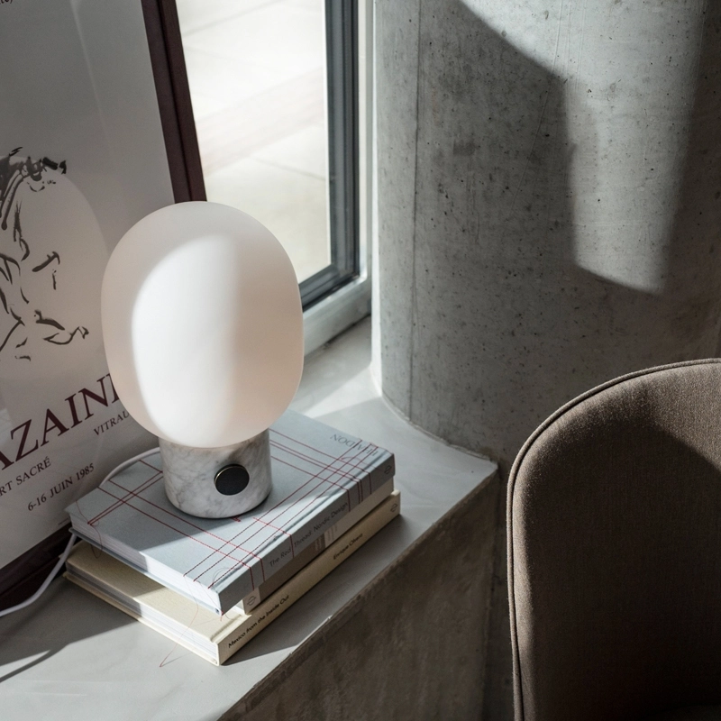 Avec la JWDA marbre, Jonas Wagell propose une lampe à poser à la silhouette douce et à la lumière chaleureuse. Elle s'inspire des anciennes lampes à huile et modernisée grâce à une forme organique simplifiée. La lampe est équipée d'une ampoule G9 opale et d'un bouton permettant de faire facilement varier la lumière, selon l'ambiance souhaitée. Editée par MenuJWDA s'intègre facilement dans toutes les pièces de la maison : sur la table de chevet dans la chambre, sur une table d'appoint dans le salon, ou encore sur le bureau.