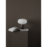 La lampe de table Karl-Johan de New Works s'inspire d'excursions dans la nature, de la recherche de champignons sauvages et des tons d'une forêt d'automne. Cette lampe apaisante combine les courbes douces du verre avec la stabilité du marbre noir Marquina ou du chêne fumé. Le résultat est une pièce poétique, une combinaison de tonalité et de texture, d'obscurité et de lumière.