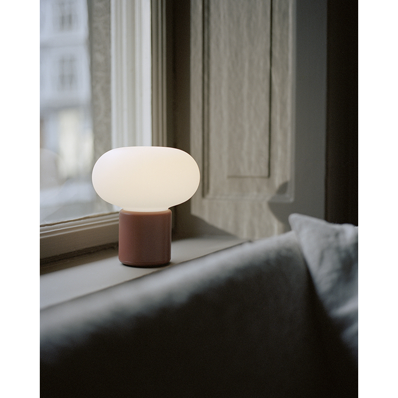 La lampe de table Karl-Johan Portable de New Works s'inspire d'excursions dans la nature, de la recherche de champignons sauvages et des tons d'une forêt d'automne. Cette lampe apaisante combine les courbes douces du verre avec des couleurs automnales telles que le rouge terracotta, le vert forêt ou encore le jaune ocre. Le résultat est une pièce poétique, une combinaison de tonalité et de texture, d'obscurité et de lumière. Karl-Johan Portable est facile à déplacer là où la lumière est nécessaire.