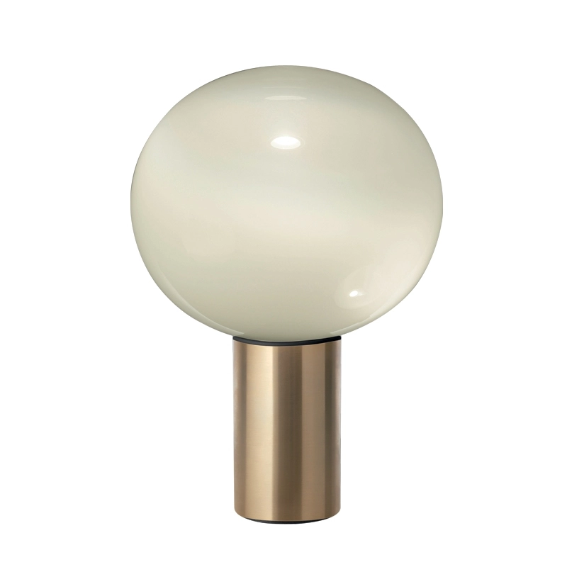 lampes sont dotées d’une base en laiton satiné et d’un diffuseur en verre soufflé. La finition du diffuseur de la