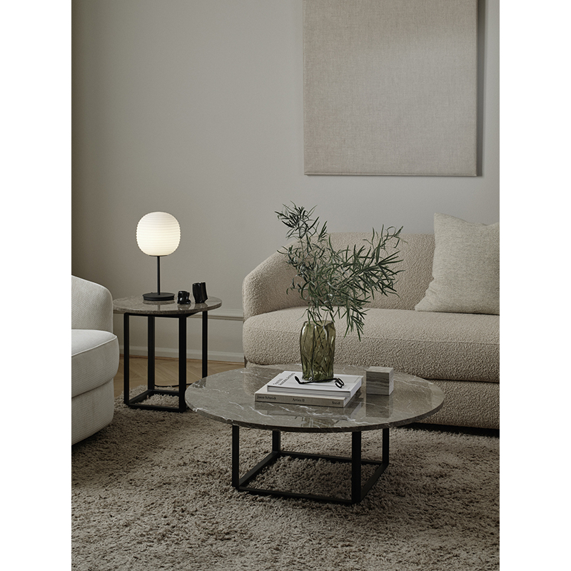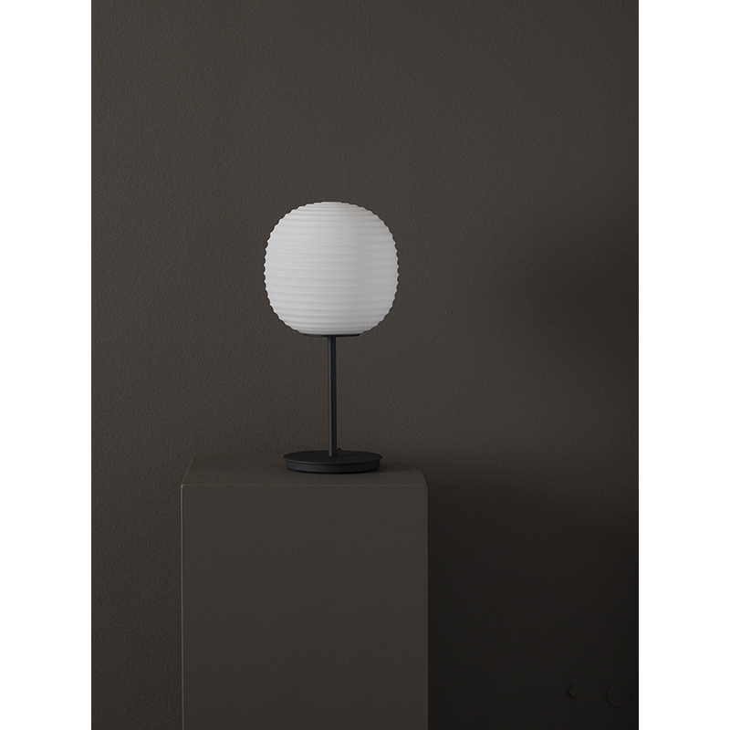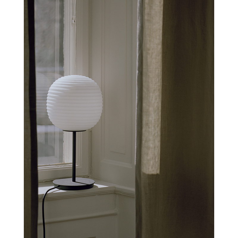 En apportant la même lumière douce que la suspension Lantern, la lampe de table Lantern complète cette famille iconique de New Works. Inspirées des lanternes traditionnelles chinoises en papier de riz, sa forme en verre dépoli reproduit cette lueur en apesanteur. En gardant fermement cette forme sculpturale au centre de la scène, une simple base en acier noir élève sa chaude lueur.