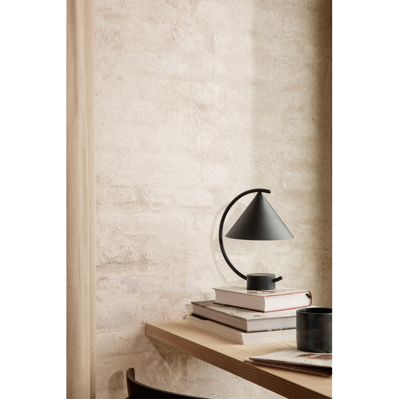 Meridian est une petite lampe à sans fil en acier qui trouve sa place dans une grande variété d’ambiances. Créée par le studio Regular Company pour la marque Ferm Living, la forme sculpturale intrigante de la lampe Meridian est composée de trois éléments géométriques simples. Aussi pratique qu’esthétique, Meridian est dotée d’une batterie qui se recharge facilement et fournit jusqu'à 12 heures d'autonomie.