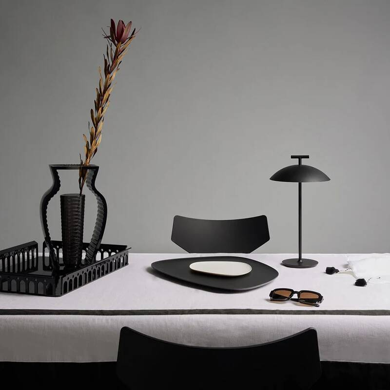 Mini Geen-A, créée par Ferruccio Laviani pour la marque Kartell, est une petite lampe élégante et pratique qui reprend les mêmes éléments caractéristiques que le lampadaire Geen. Elle se distingue par son abat-jour en forme de coupole, surmonté d’une petite poignée en forme de T. La lampe Mini Geen-A est disponible avec une alimentation électrique directe ou en version portable, fonctionnant sur batterie. La Mini Geen-A Kartell avec prise est parfaite pour être installée sur une table de chevet ou un bureau par exemple, tandis que la version sur batterie se déplace facilement selon les besoins, pour un éclairage d’appoint à l’intérieur ou bien à l’extérieur pour profiter des longues soirées d’été.