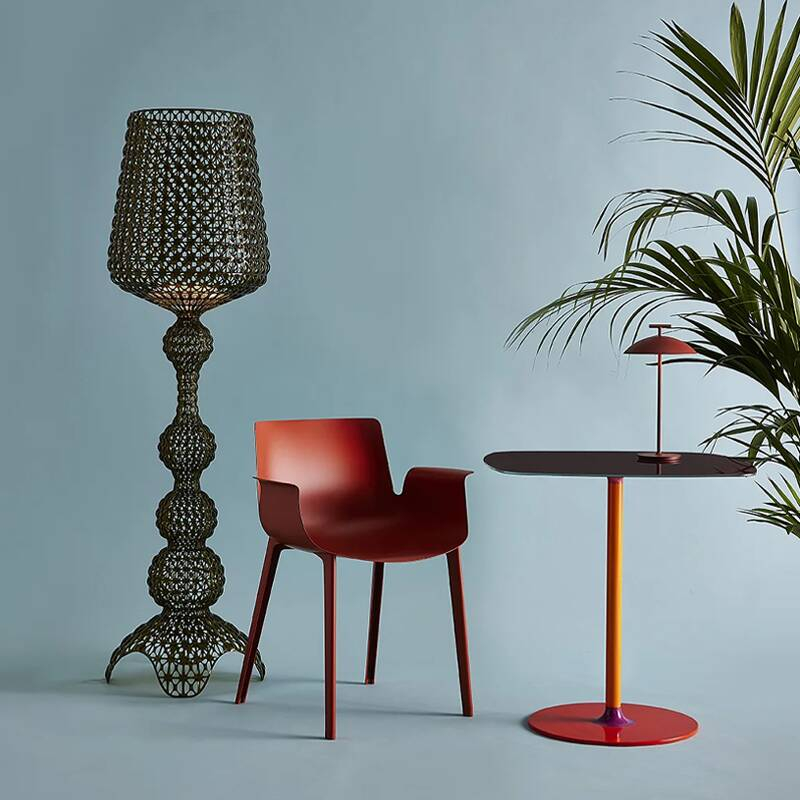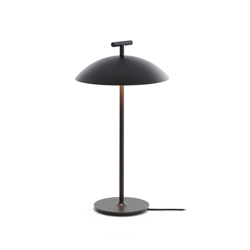 Mini Geen-A, créée par Ferruccio Laviani pour la marque Kartell, est une petite lampe élégante et pratique qui reprend les mêmes éléments caractéristiques que le lampadaire Geen. Elle se distingue par son abat-jour en forme de coupole, surmonté d’une petite poignée en forme de T. La lampe Mini Geen-A est disponible avec une alimentation électrique directe ou en version portable, fonctionnant sur batterie. La Mini Geen-A Kartell avec prise est parfaite pour être installée sur une table de chevet ou un bureau par exemple, tandis que la version sur batterie se déplace facilement selon les besoins, pour un éclairage d’appoint à l’intérieur ou bien à l’extérieur pour profiter des longues soirées d’été.
