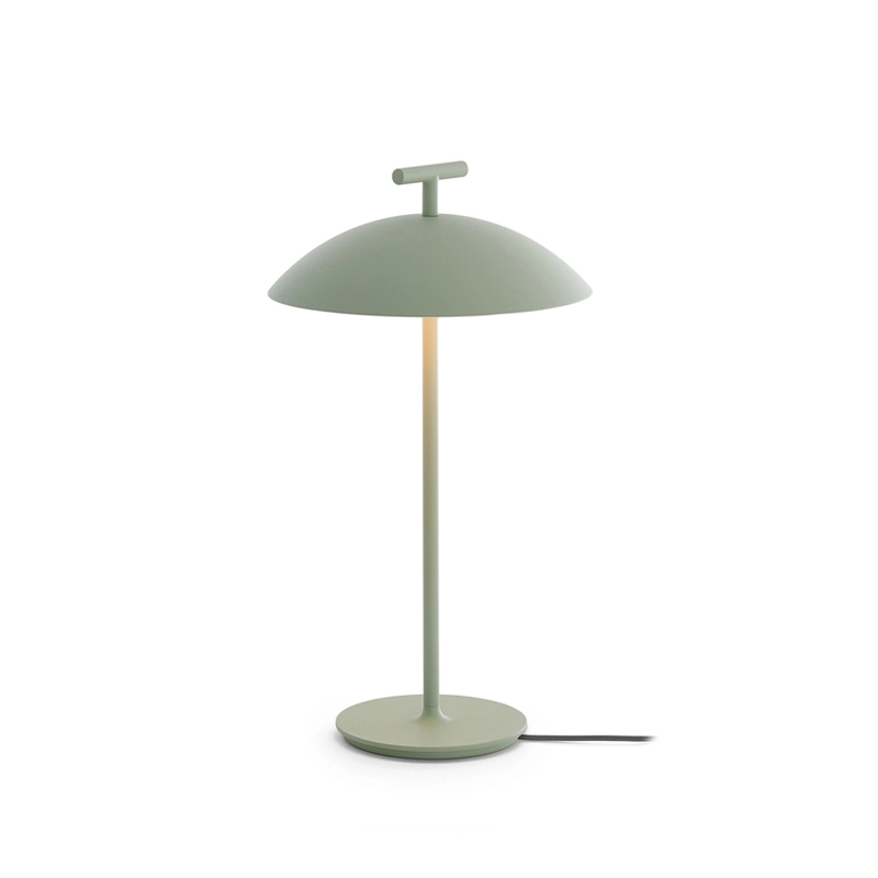Mini Geen-A, créée par Ferruccio Laviani pour la marque Kartell, est une petite lampe élégante et pratique qui reprend les mêmes éléments caractéristiques que le lampadaire Geen. Elle se distingue par son abat-jour en forme de coupole, surmonté d’une petite poignée en forme de T. La lampe Mini Geen-A est disponible avec une alimentation électrique directe ou en version portable, fonctionnant sur batterie. La Mini Geen-A Kartell avec prise est parfaite pour être installée sur une table de chevet ou un bureau par exemple, tandis que la version sur batterie se déplace facilement selon les besoins, pour un éclairage d’appoint à l’intérieur ou bien à l’extérieur pour profiter des longues soirées d’été.