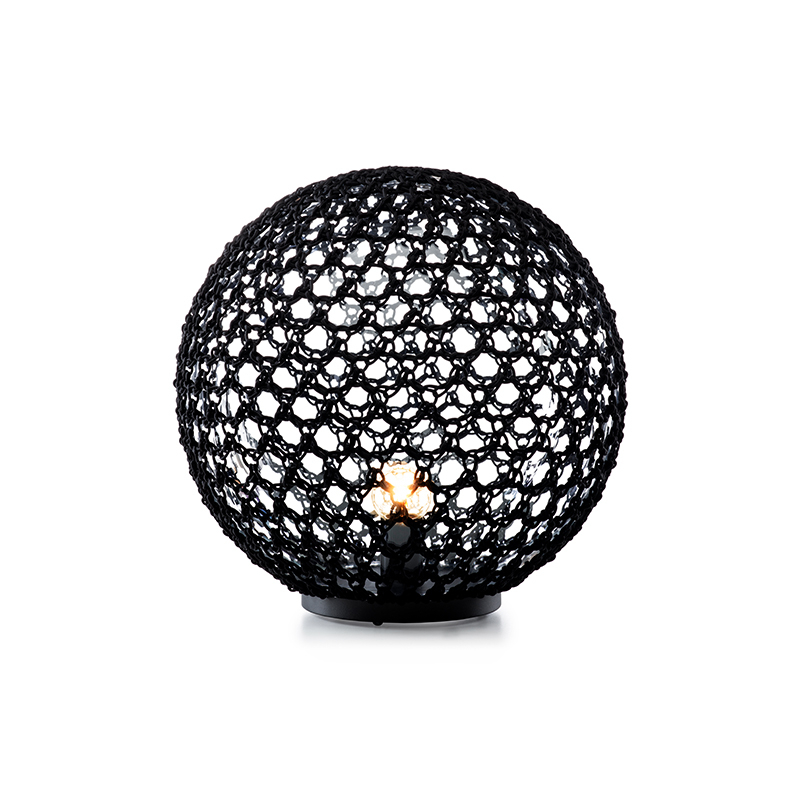 Monsieur Lebonnet fait partie de la collection Monsieur Tricot, une gamme d'éclairages pour l'extérieur éditée par Tribu, tricotés et crochetés à la main pour transformer votre terrasse et jardin en un lieu féérique à la nuit tombée. Les lampes à poser, conçues par le designer belge Ilia Eckardt, allient techniques traditionnelles, matériaux performants et technologie moderne. Eckardt a mis au point sa première collection d'éclairage extérieur tricoté, conçue comme une famille. Faites ainsi connaissance avec la séduisante suspension Monsieur Lebonnet déclinée en trois tailles. Cette lampe à poser sphérique diffusent une lumière tamisée chaleureuse et projettent des ombres magnifiques, utilisée séparément ou brillant dans une subtile association de dimensions et de tissages différents.